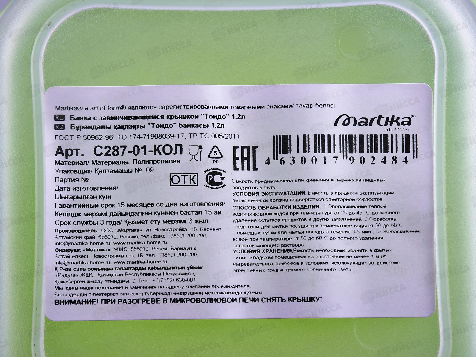 Банка с завинчивающейся крышкой Тондо 1,2л С287-01-КОЛ *20