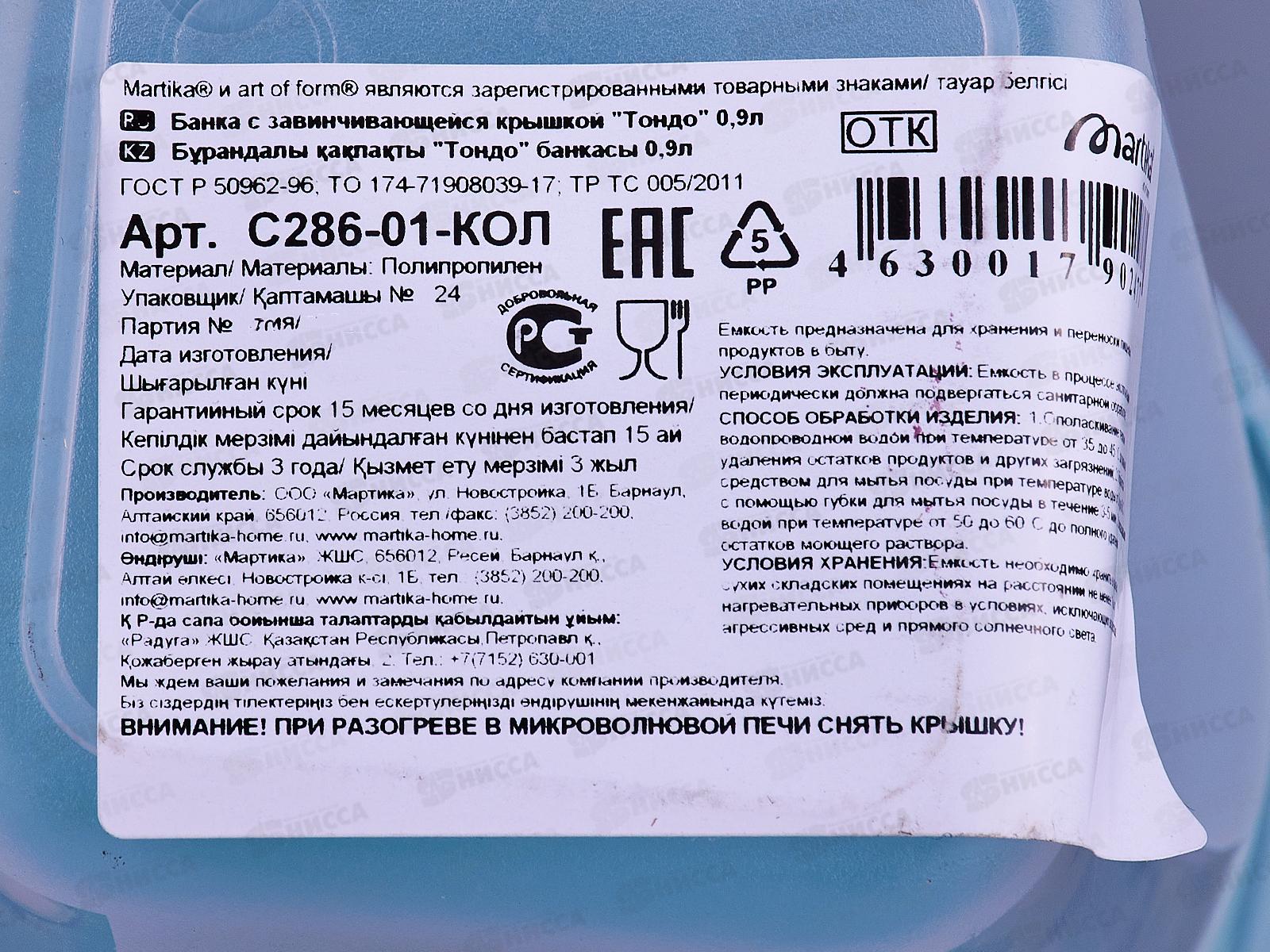 Банка с завинчивающейся крышкой Тондо 0,9л С286-01-КОЛ *16