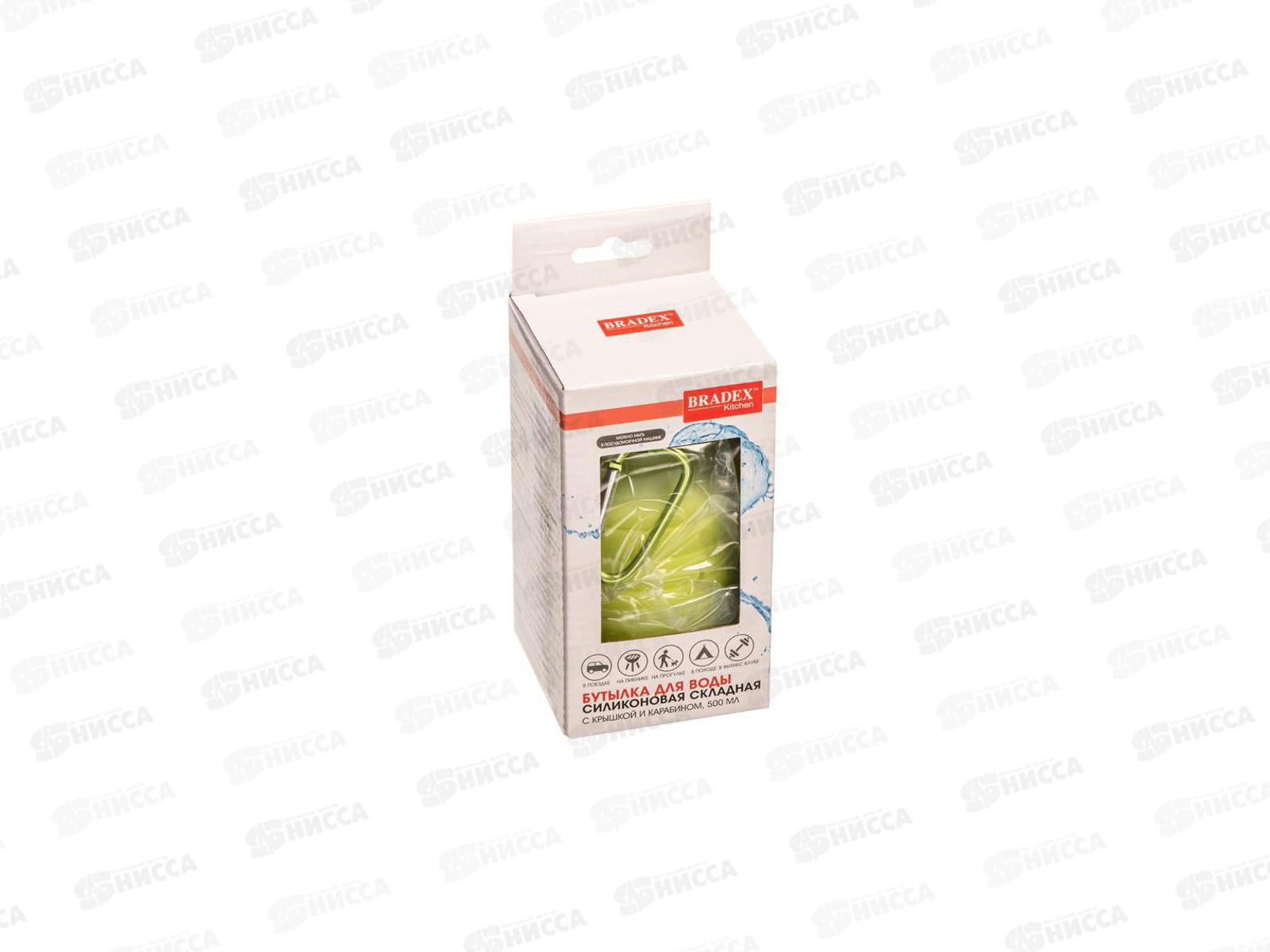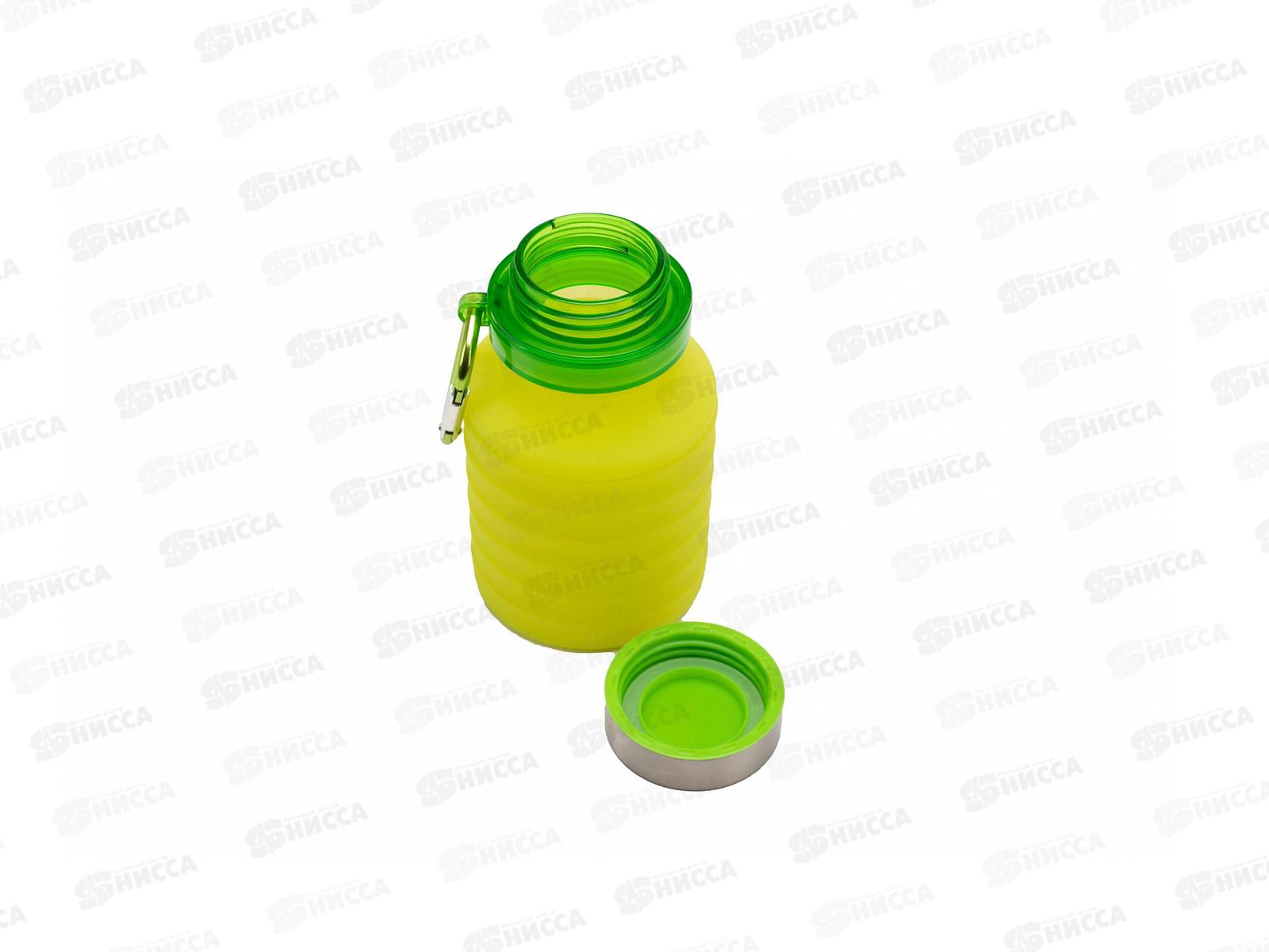Силиконовая складная бутылка для воды с крышкой 500мл с карабином TK 0271