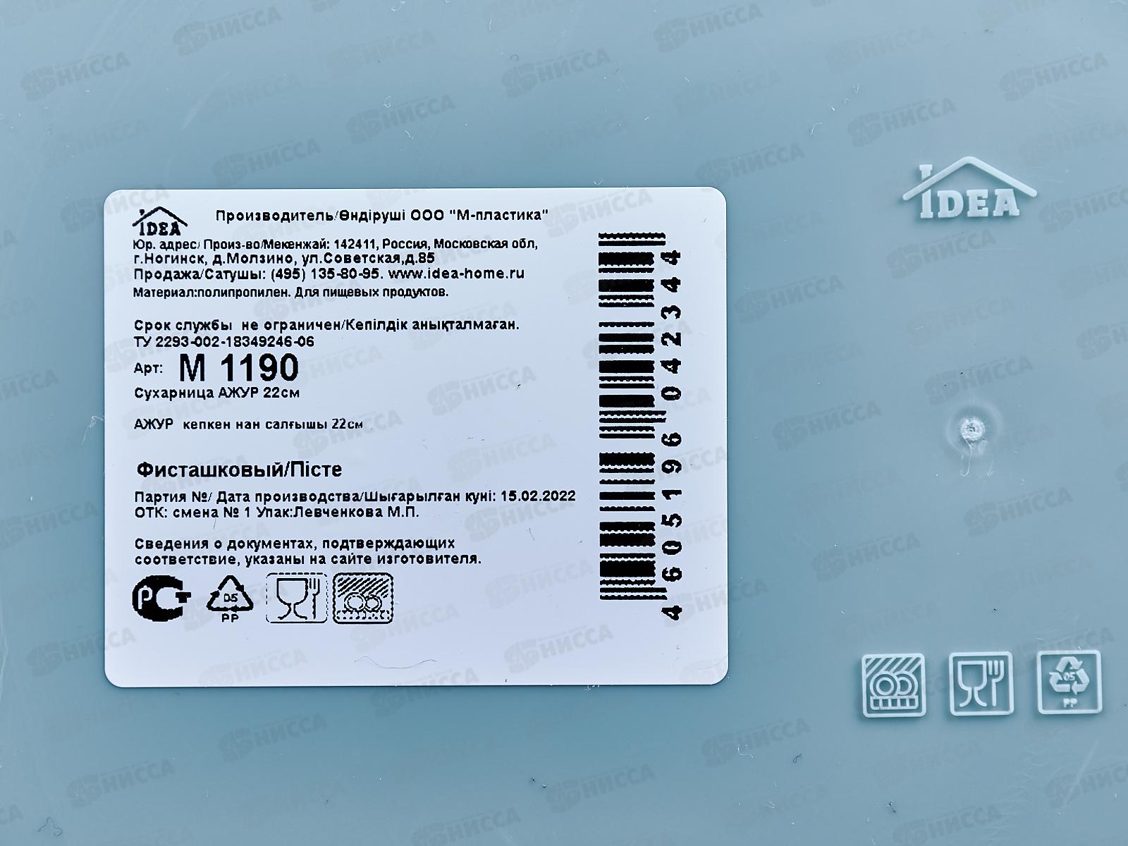 Сухарница АЖУР 22см Фисташковый М1190 *12