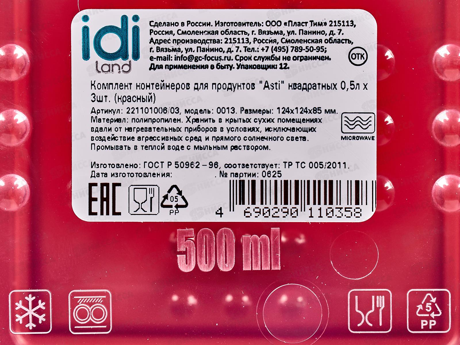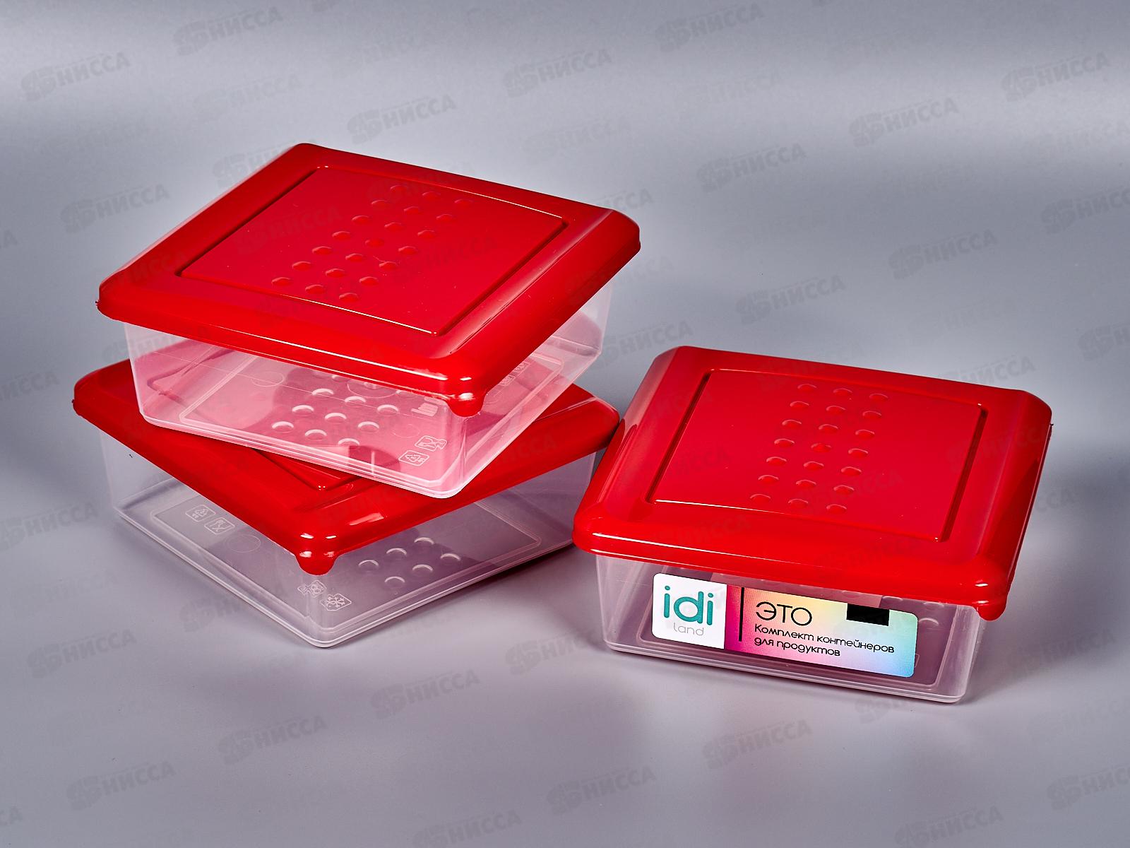 Контейнер для продуктов "Asti" квадрат 0,5л 3шт красный 221101006/03 *18