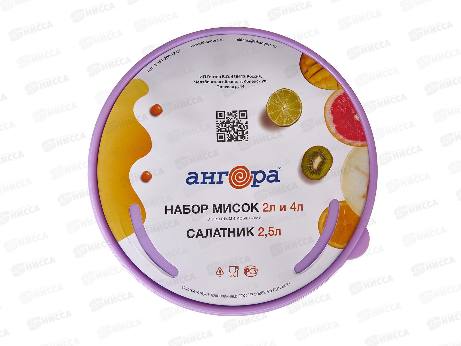 Набор мисок с цветными крыш 2+4л Салатник 2,5л сиреневый (Ангора) *12