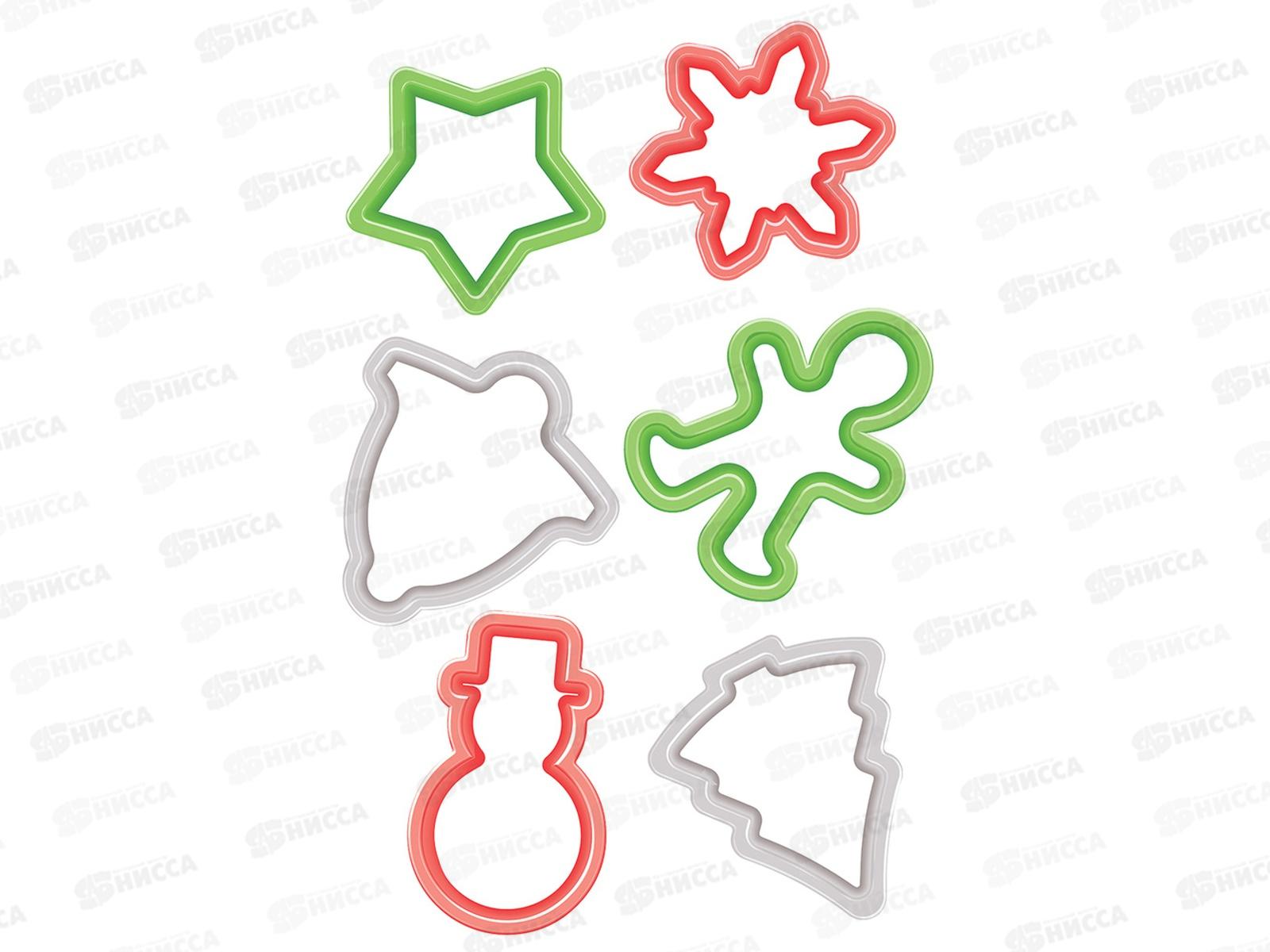 Шесть формочек в виде ёлки, снеговика, снежинки, колокольчика, звезды и пряничного человечка обеспечат вам с детьми интересный вечер за выпечкой. Формочки легко моются, в том числе в посудомойке. Продаются в яркой упаковке, привлекающей внимание.