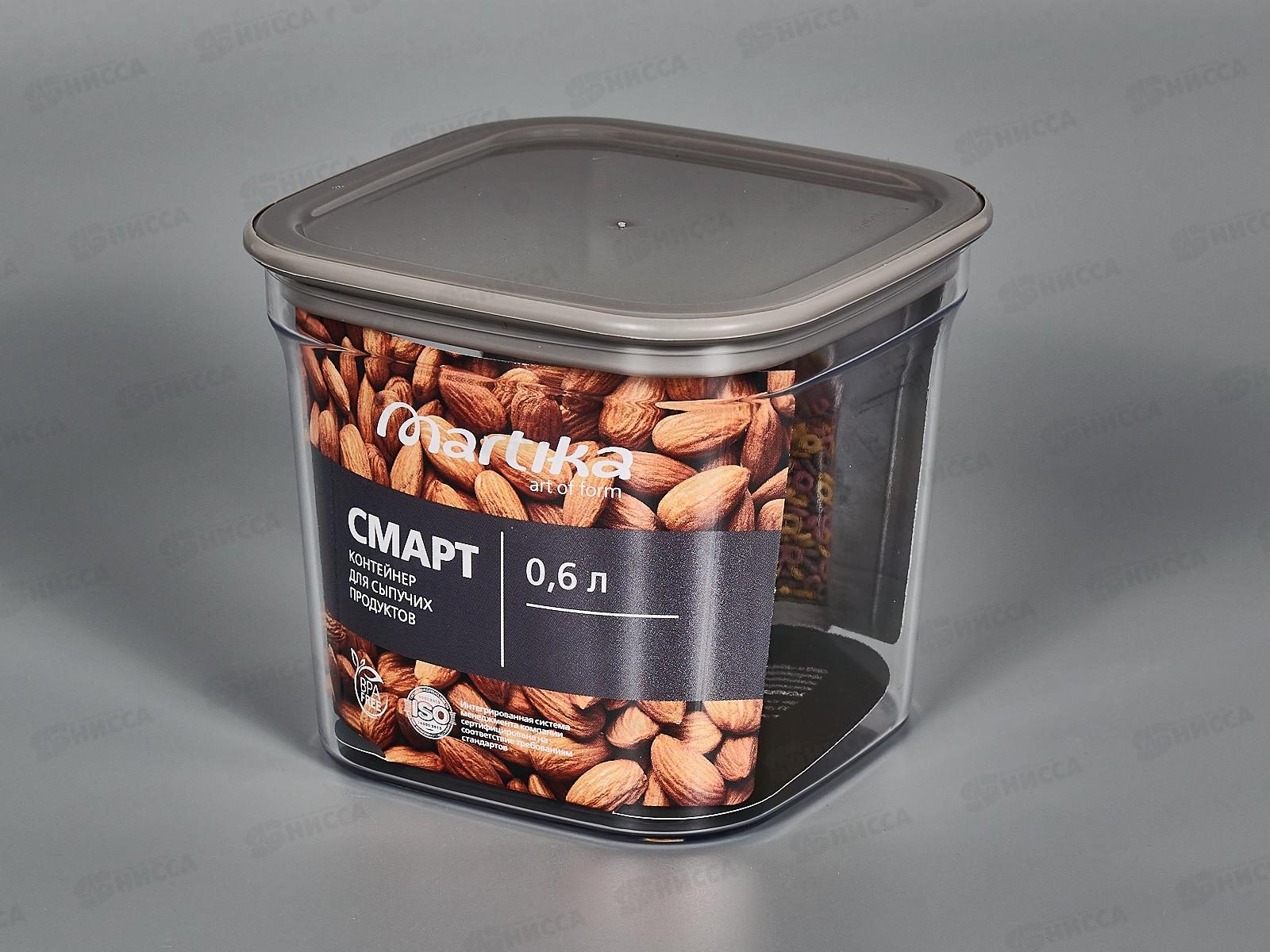 Контейнер для сыпучих продуктов Смарт 0,6л Пыльно-серый С413Псер *16