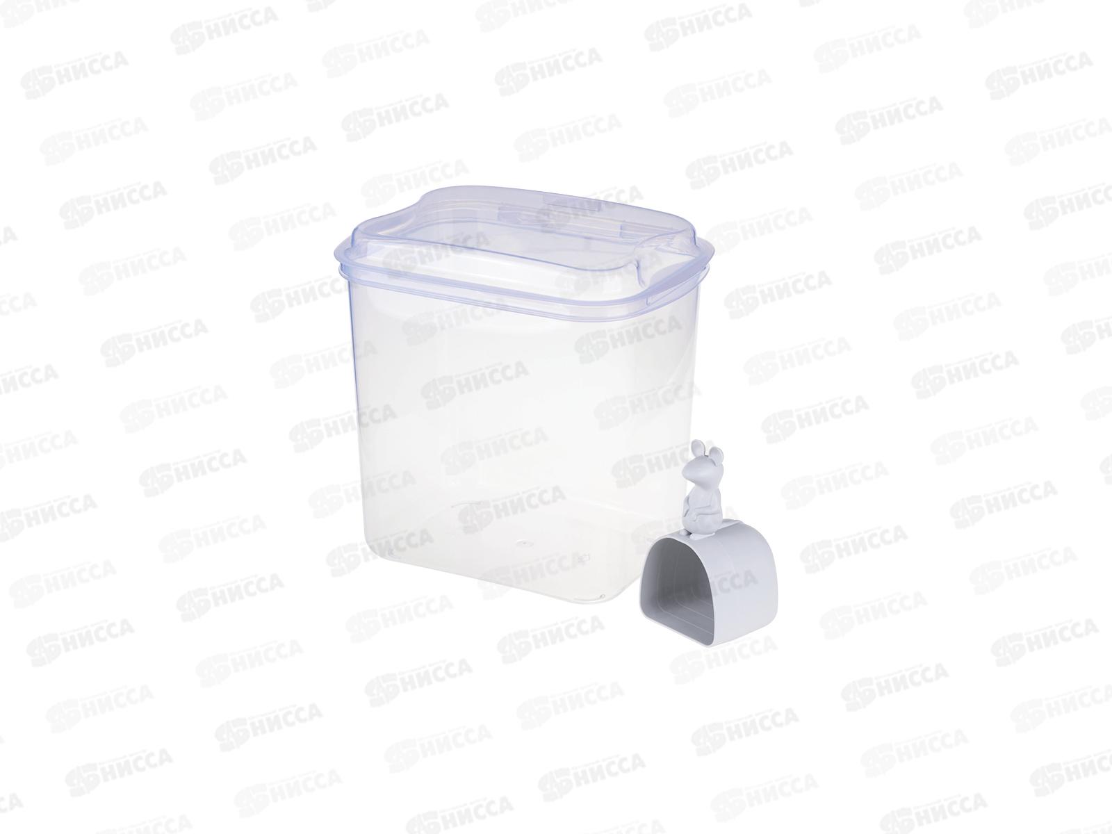 Контейнер для муки – отличная замена ненадёжным бумажным пакетам. Предназначен для организации хранения сыпучих продуктов на кухне и в ванной комнате. Крышка фиксируется и защищает содержимое от посторонних запахов и влаги. Прозрачный корпус позволяет следить за остатками продуктов. Контейнер с мерной ложкой оживит интерьер кухни и упростит множество кулинарных операций. Мерная ложка объёмом 180 мл станет незаменимым девайсом при приготовлении любимых блюд. Ручка у ложки выполнена в виде мышки.