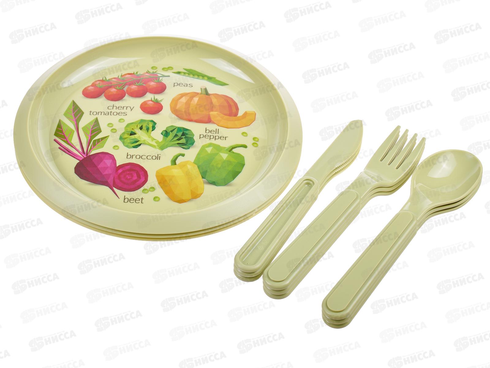 Состав набора: тарелка d 21,5 см - 3 шт, вилка, ложка, нож по 3 шт