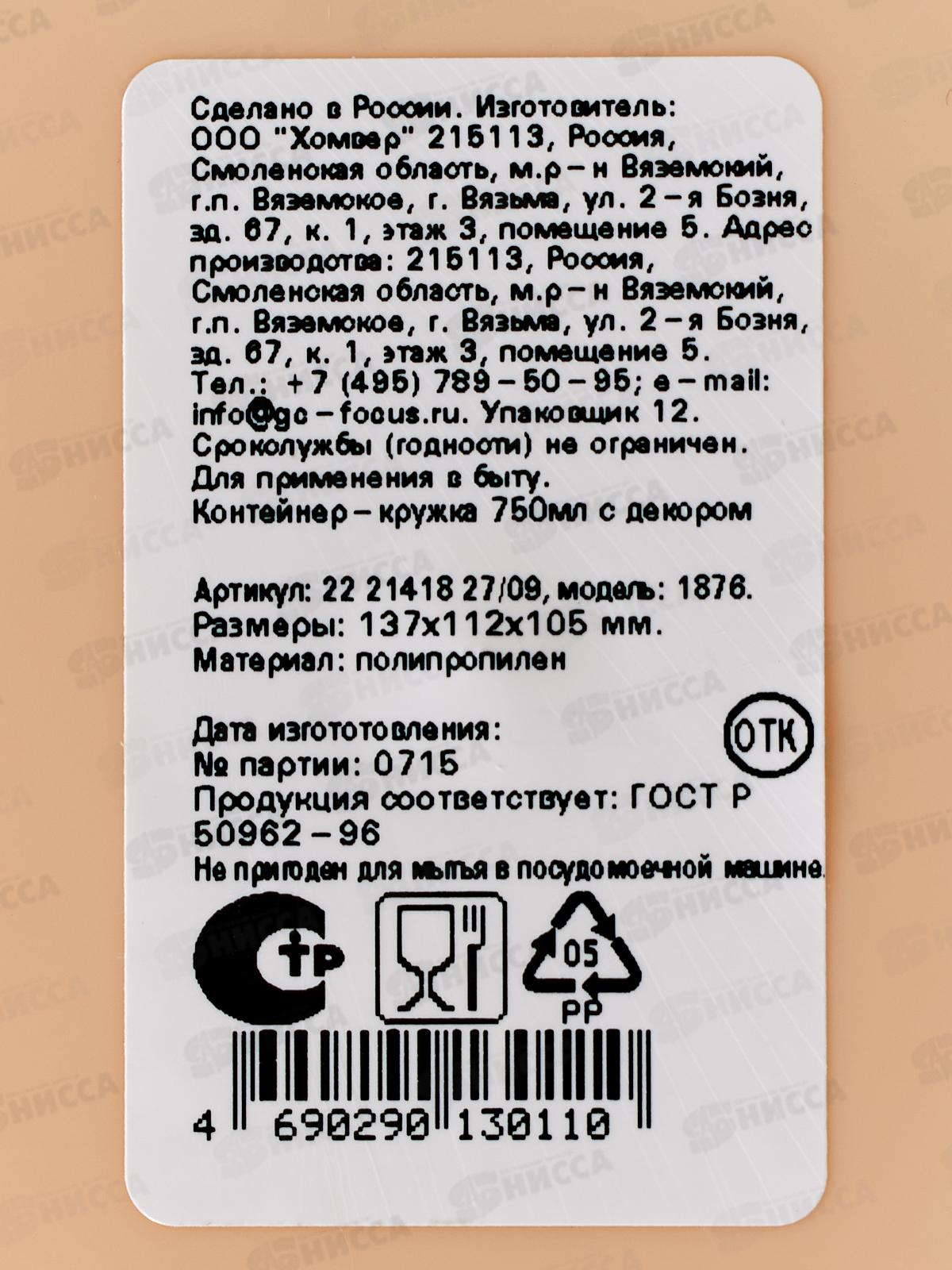 Контейнер-кружка 0,75л с/кр с декором Бежевый 222141827/09 *24