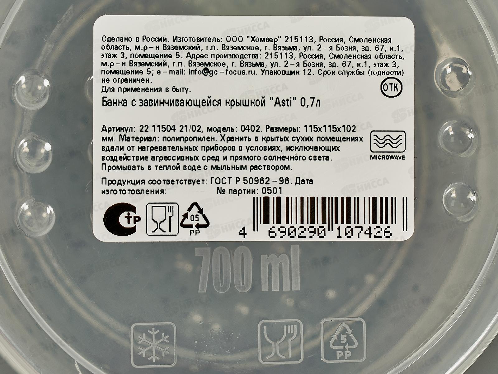 Банка 0,7л Asti с/к гранит св-серый 221150421/02 *12