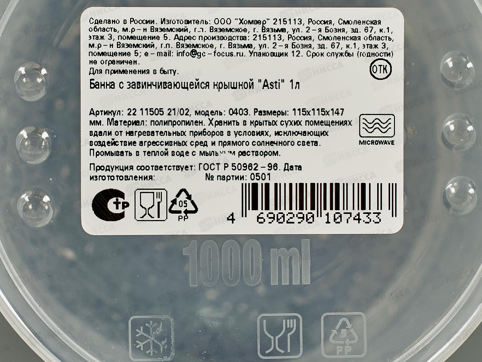 Банка 1л Asti с/к гранит св-серый 221150521/02 *18