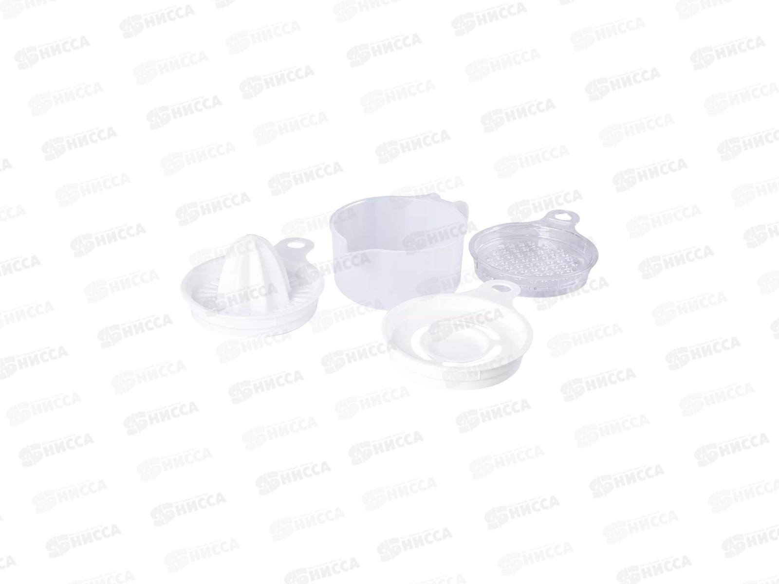 В компактном комплекте собраны самые востребованные аксессуары: соковыжималка для цитрусовых, универсальная тёрка, практичный сепаратор для яиц, мерная емкость с носиком, 350 мл. Каждая насадка выполнена из качественного пластика с эргономичными элементами для комфортного использования, а инновационная система хранения позволяет компактно складывать все насадки друг в друга, экономя драгоценное место на вашей кухне.