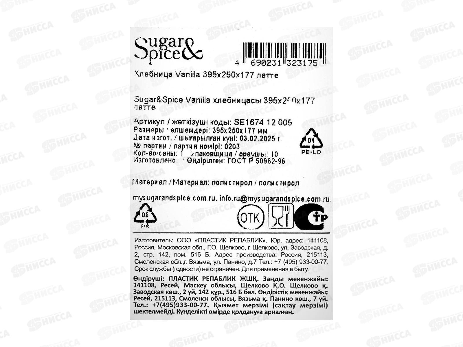 Хлебница Sugar&Spice Vanilla 395х250х177 Латте, SE167412005 *6