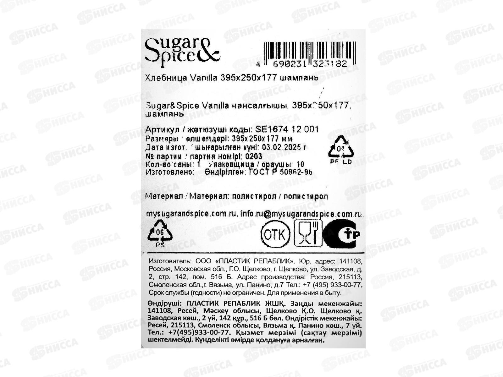 Хлебница Sugar&Spice Vanilla 395х250х177 Шампань, SE167412001 *6