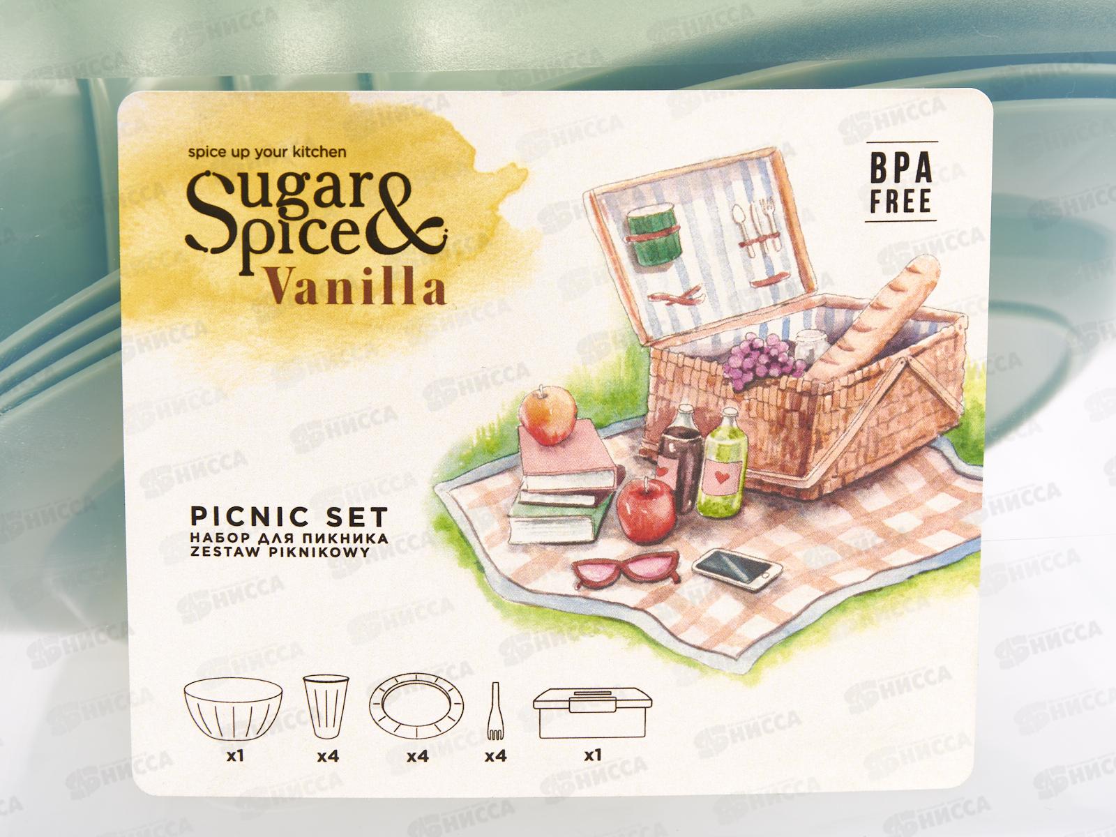 Набор для пикника Sugar&Spice Vanilla на 4 персоны (14 предметов) фисташка Набор для пикника Sugar&Spice Vanilla рассчитан на организацию отдыха на открытом воздухе. Удобный и стильный набор посуды для пикника на 4 персоны незаменимая вещь в поездке за город. Вся посуда свободно помещается в контейнер, который имеет ручку для удобства переноски. Комплектация набора: салатник объемом 1,7л, порционная тарелка - 4шт, салатник объемом 0,6л - 4 шт., вилка - 4шт. контейнер с ручкой -1шт. Температурный режим: -5 +70°С.