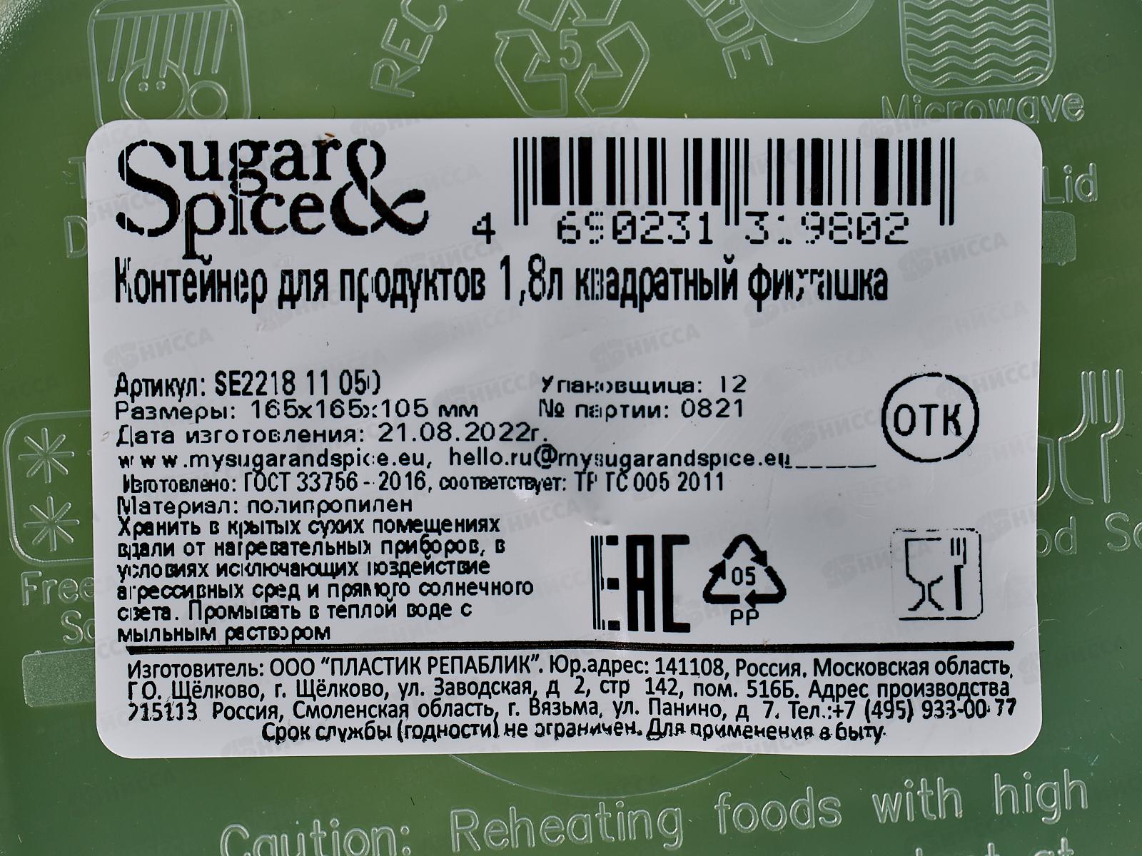 Контейнер д/прод. "Sugar Spice" 1,8л квадр Фисташка SE221811050 *20