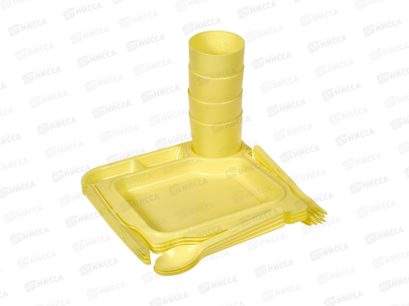 Состав набора: стакан - 4 шт; тарелка - 4 шт; вилка - 4 шт; ложка - 4 шт, нож - 4 шт.