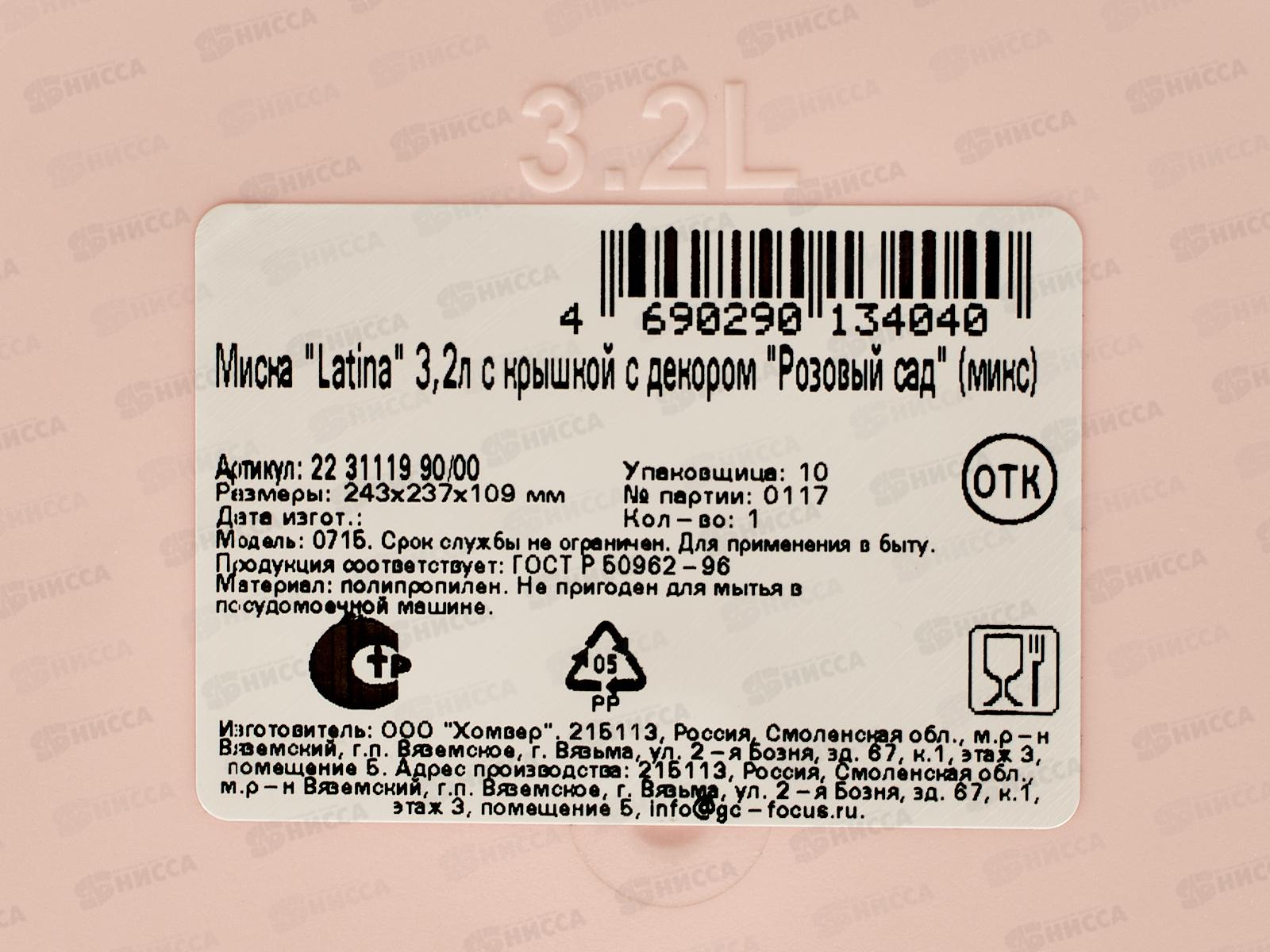 Миска 3,2л Latina с/к Розовый сад микс 223111990/00 *15