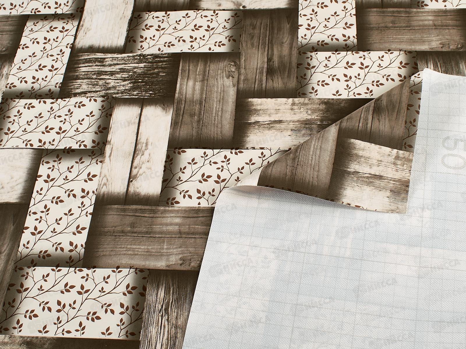 Поверхность клеенки полуматовая, гладкая. На основу нанесена разметка для удобства отмеривания и нарезания клеенки.