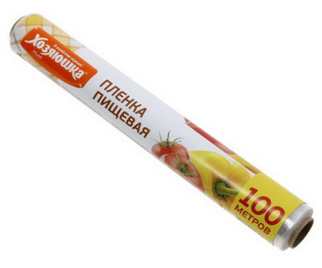 Пищевая пленка "Хозяюшка Мила" 100 м, позволяет увеличить срок хранения продуктов, предотвращает смешивание запахов в холодильнике, высыхание продуктов, обеспечивает эстетический вид продуктов, подходит для заворачивания школьных завтраков, бутербродов.