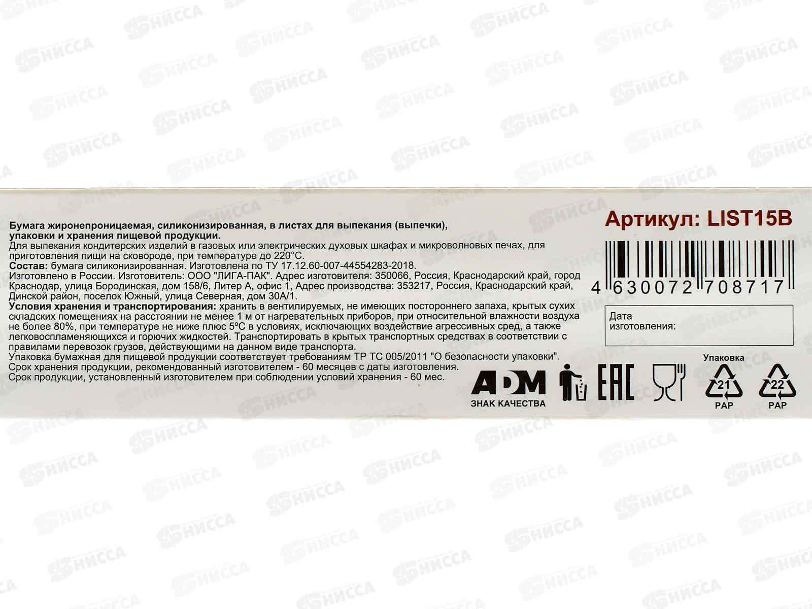 Бумага для выпекания LIST15B силик 15листов 38*42см бурая в/к *24