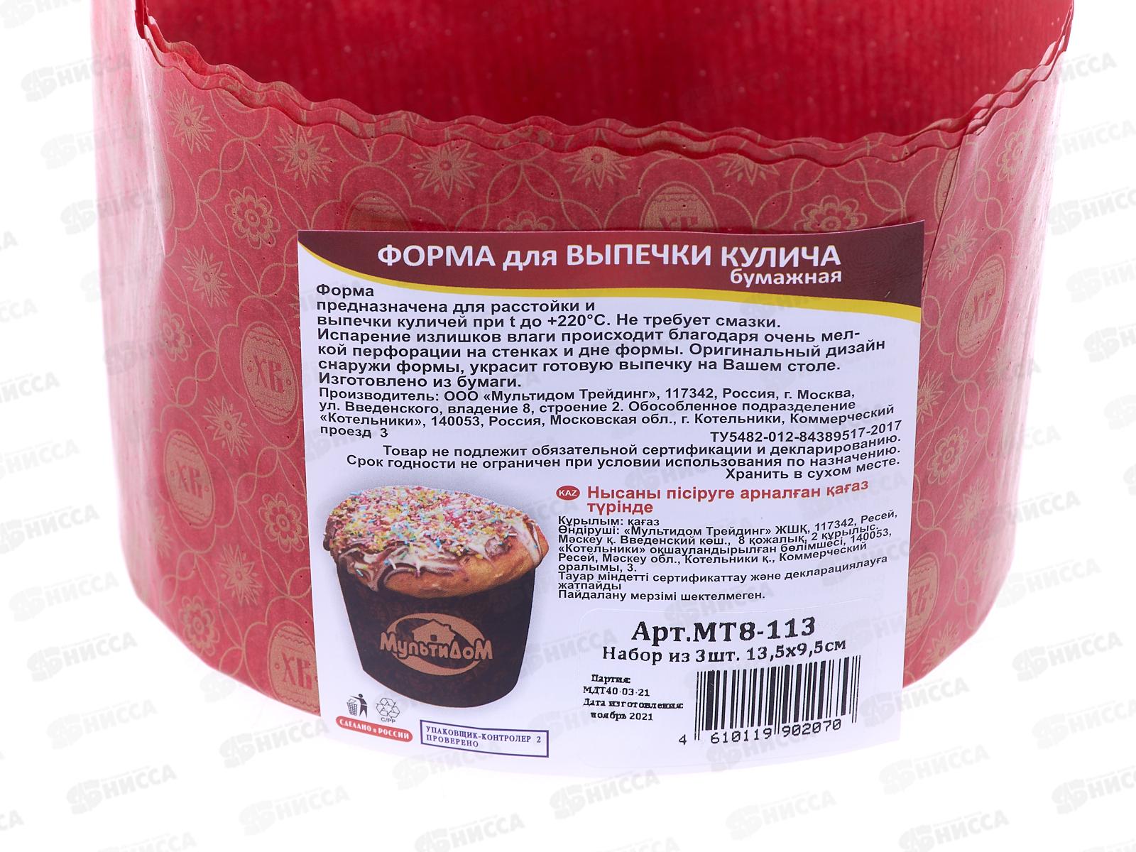 Набор форм для кулича Пасхальная бумажная 3ш 13,5-9,5см МТ8-113