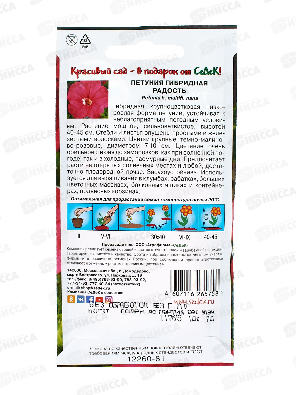 Петуния Радость F1 (низкорослая, крупноцветковая, темно-карминно.-розовая) (Евро, 10) СеДек +