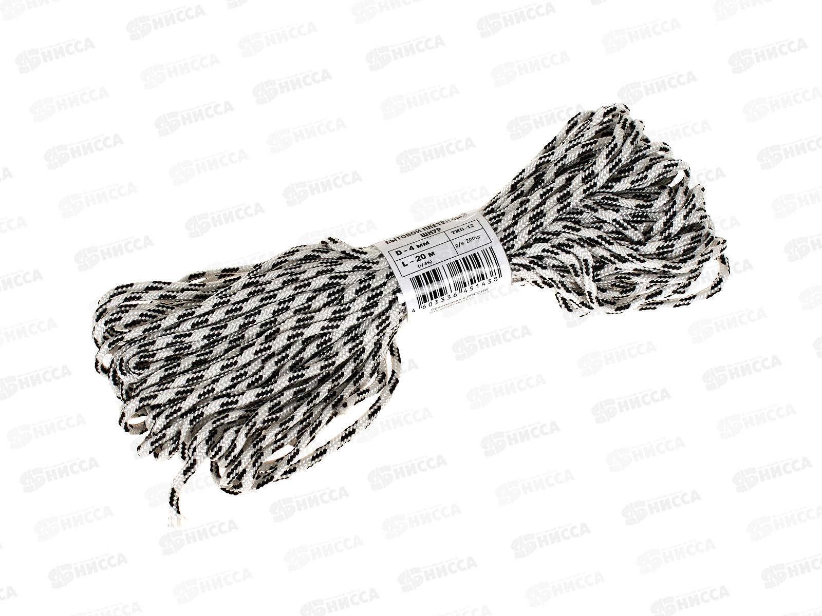 Плетеный бытовой шнур предназначен для различных бытовых и хозяйственных целей. Бытовой шнур обладает высокой прочностью, устойчив к действию щелочей, растворителей и кислот, не впитывает влагу. Длина шнура - 20 м. Диаметр - 4 мм.