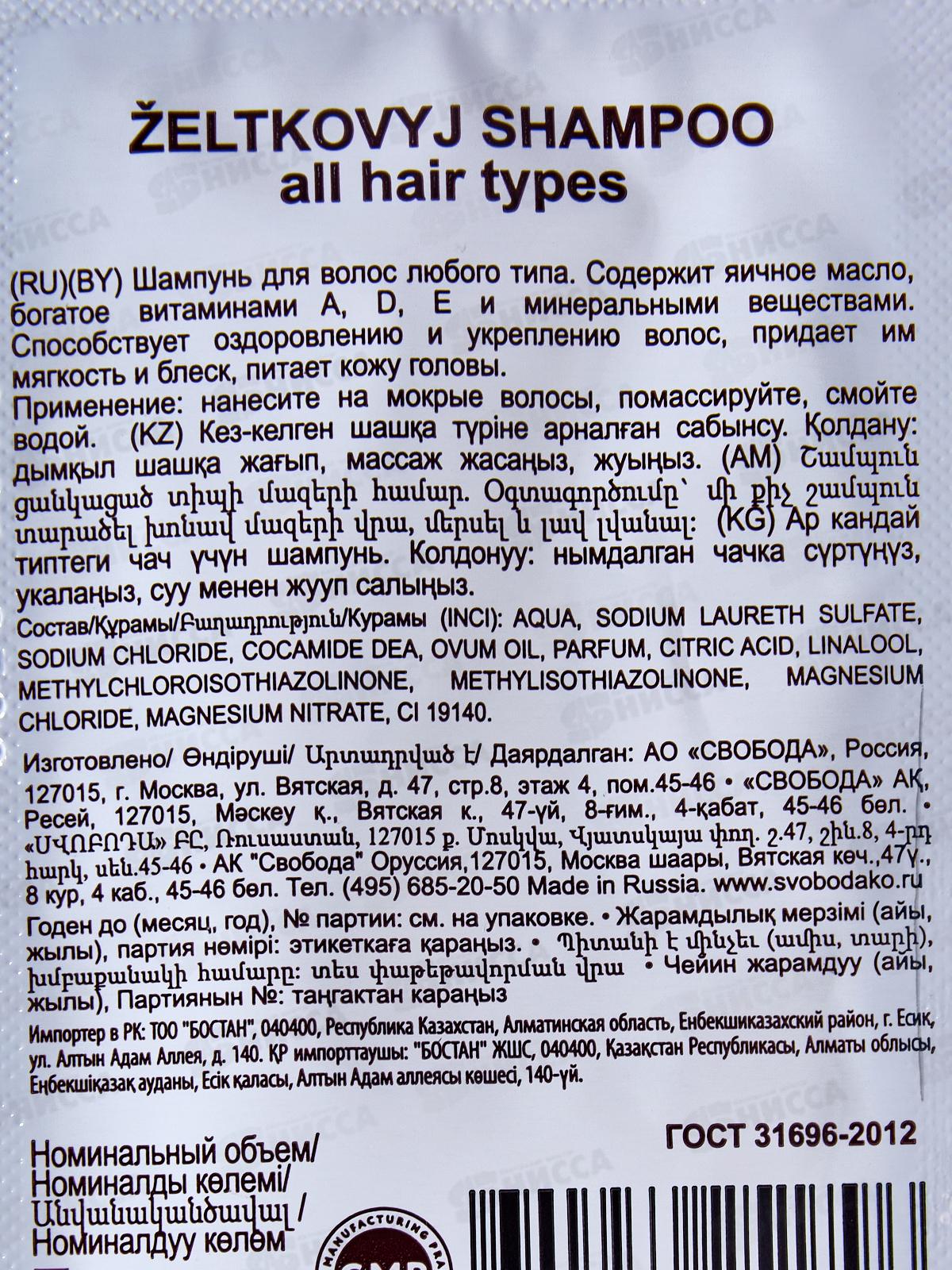 Свобода ЖЕЛТКОВЫЙ шампунь саше 7,2 г *300