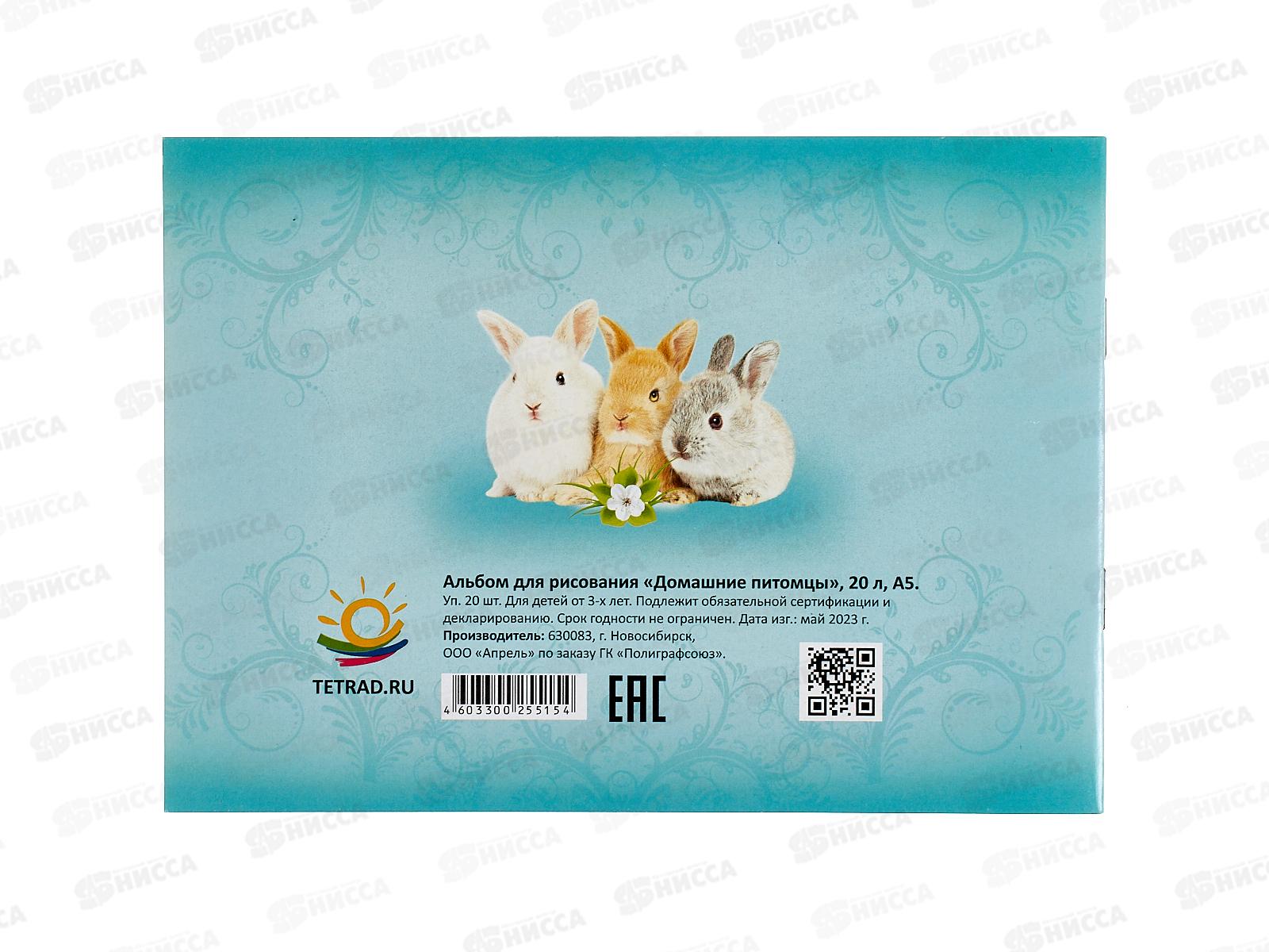 Альбом для рисования 20листов ПГС А5 Дом питомцы, скрепка *20