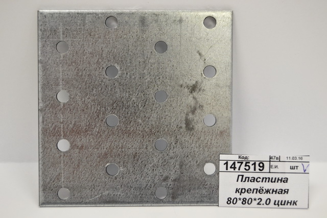 Пластина крепёжная 80*80*2.0 цинк *100