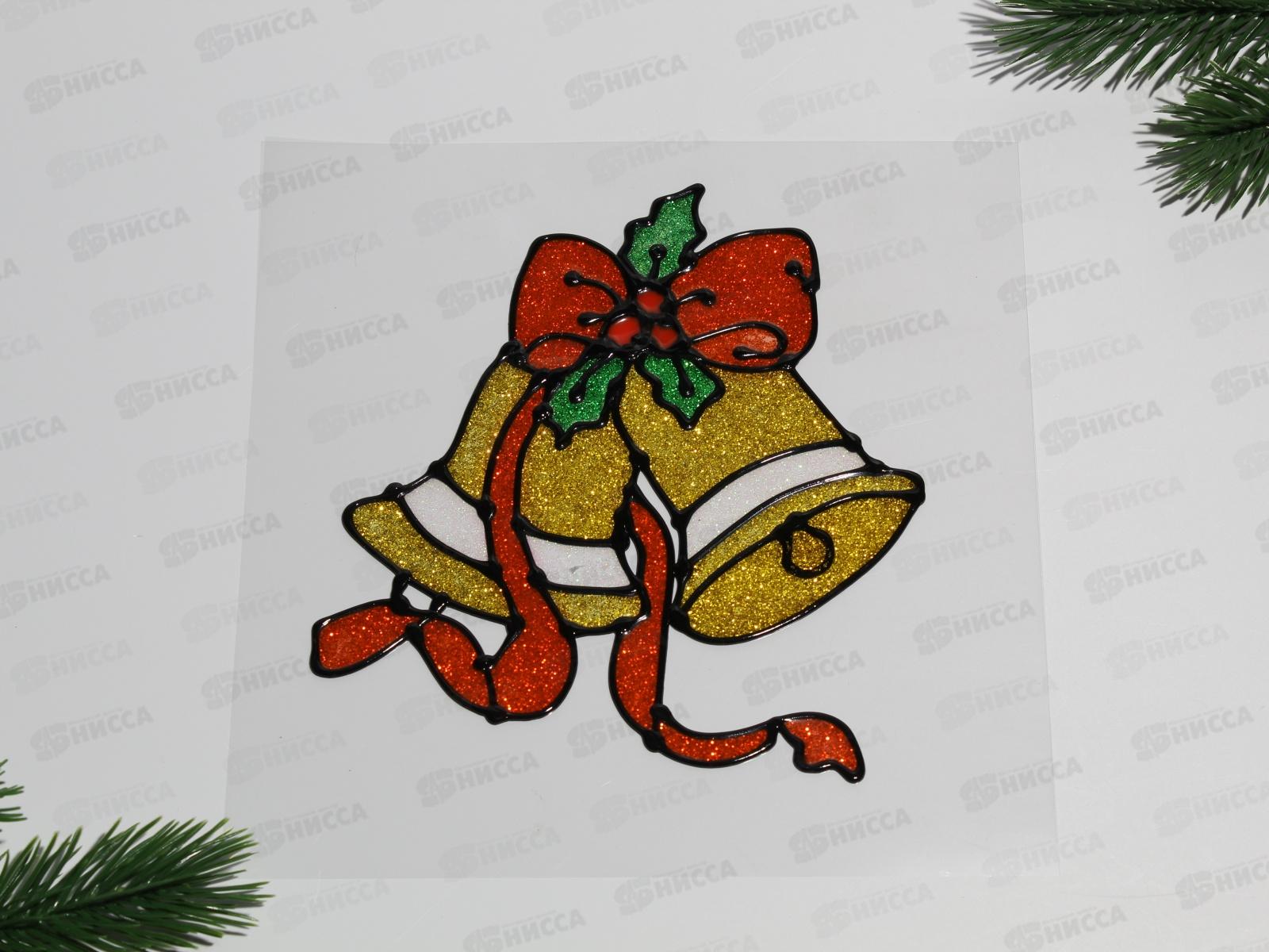 Наклейка на стекло 16.5х14.5 асс, AL-3774 Дед Морозы, Снеговики, Колокольчики *600