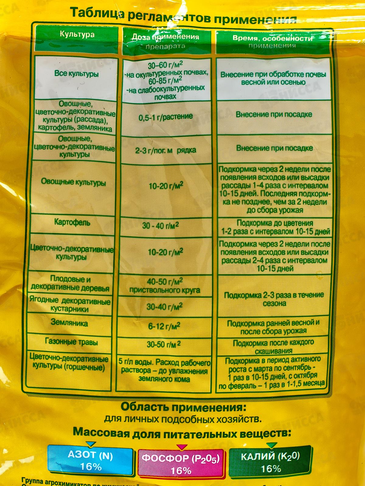 Комплексное минеральное гранулированное удобрение с микроэлементами для выращивания садовых культур и овощей в открытом грунте и теплицах. Для садовых культур, для овощей. Содержит все необходимые для растений элементы питания, в т.ч. микроэлементы. Обеспечивает быстрый эффект, гарантирует хороших рост растений и богатый урожай. Не содержит хлор, вредный для многих растений и не подкисляет почву.