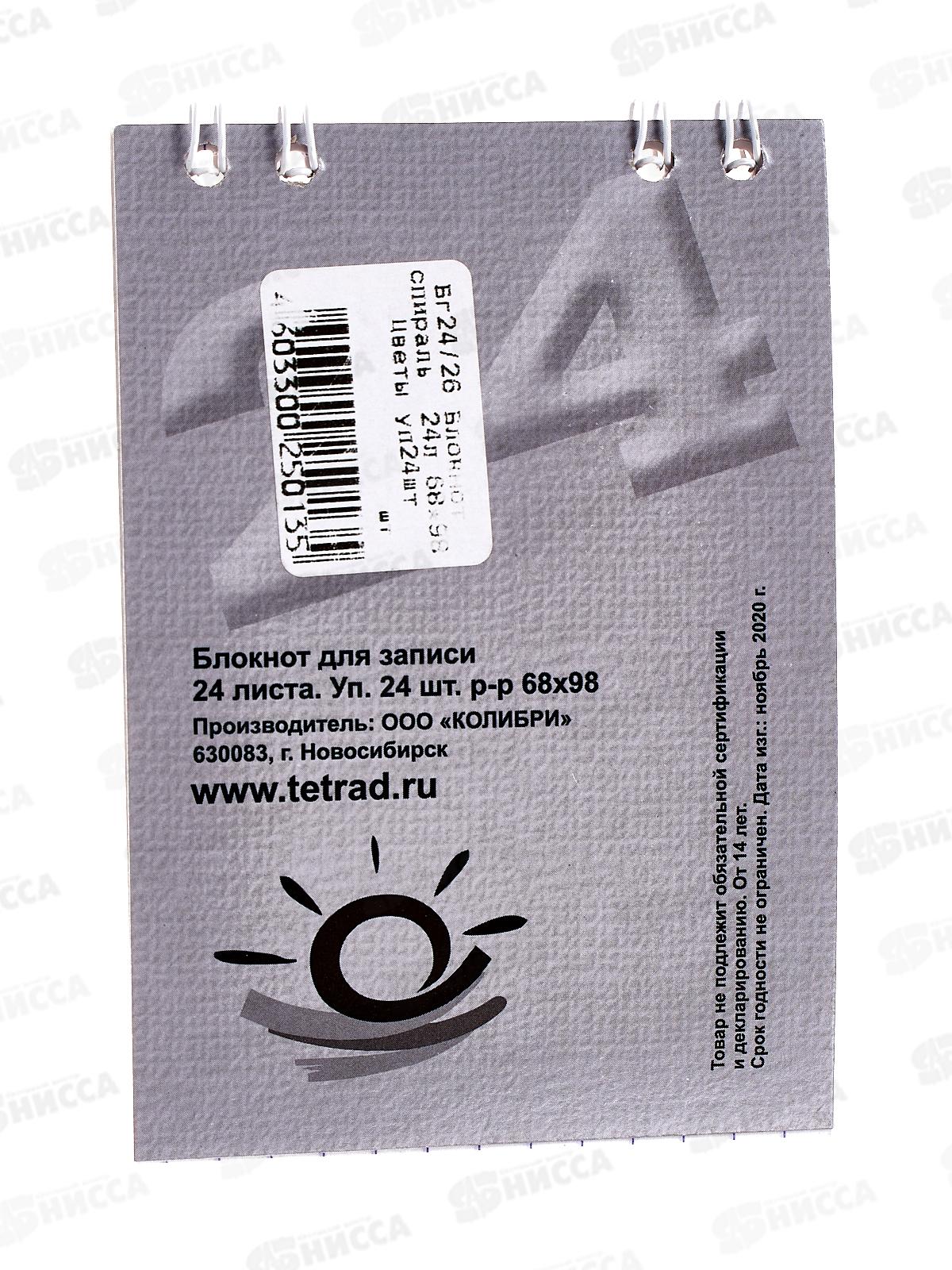 Блокнот 24листа ПГС Цветы, 68*98, на гребне. *24