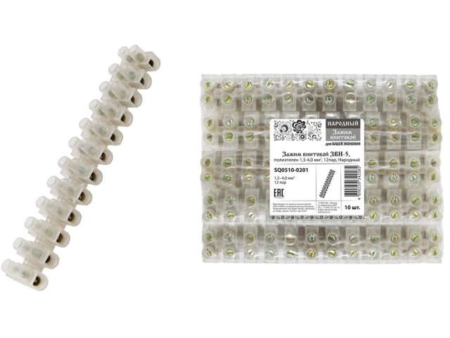 Зажим винтовой Народный ЗВИ-5 п/э 1,5-4кв.мм 12пар, 0201 *10
