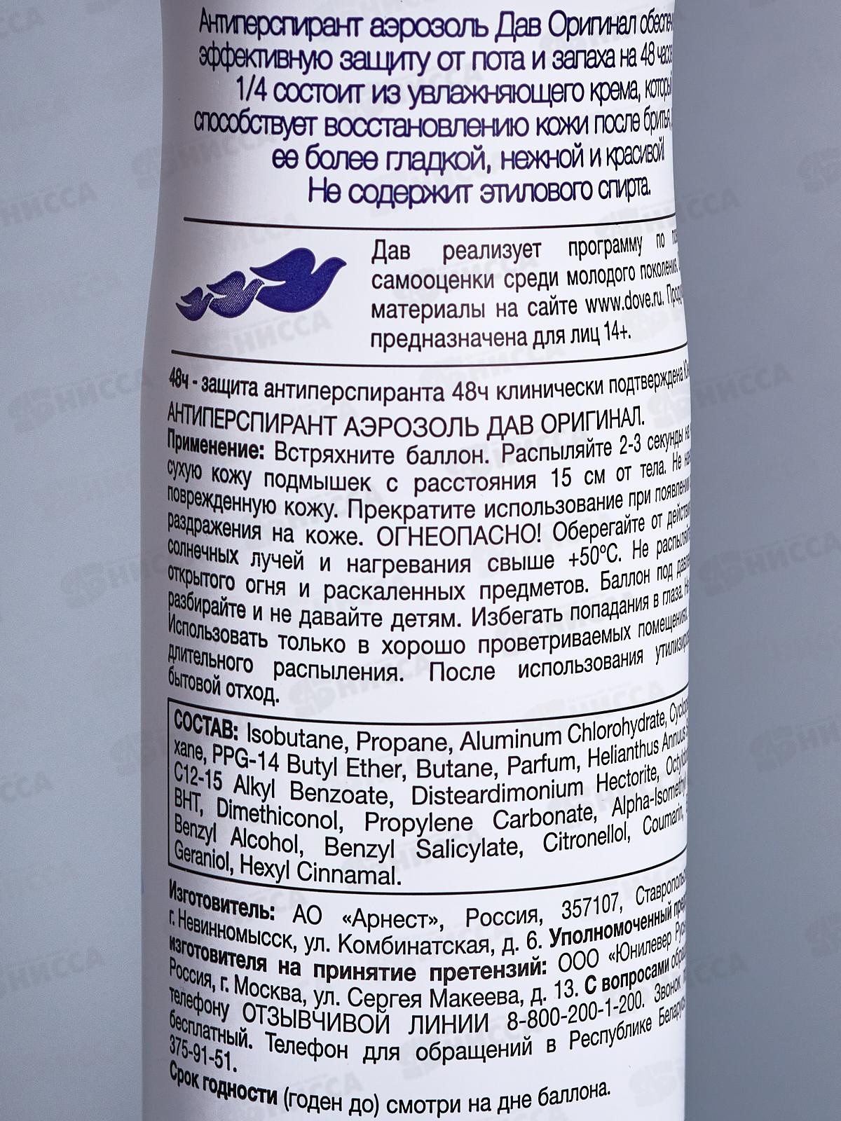 ДАВ дезодорант Оригинал аэрозоль 150мл *6
