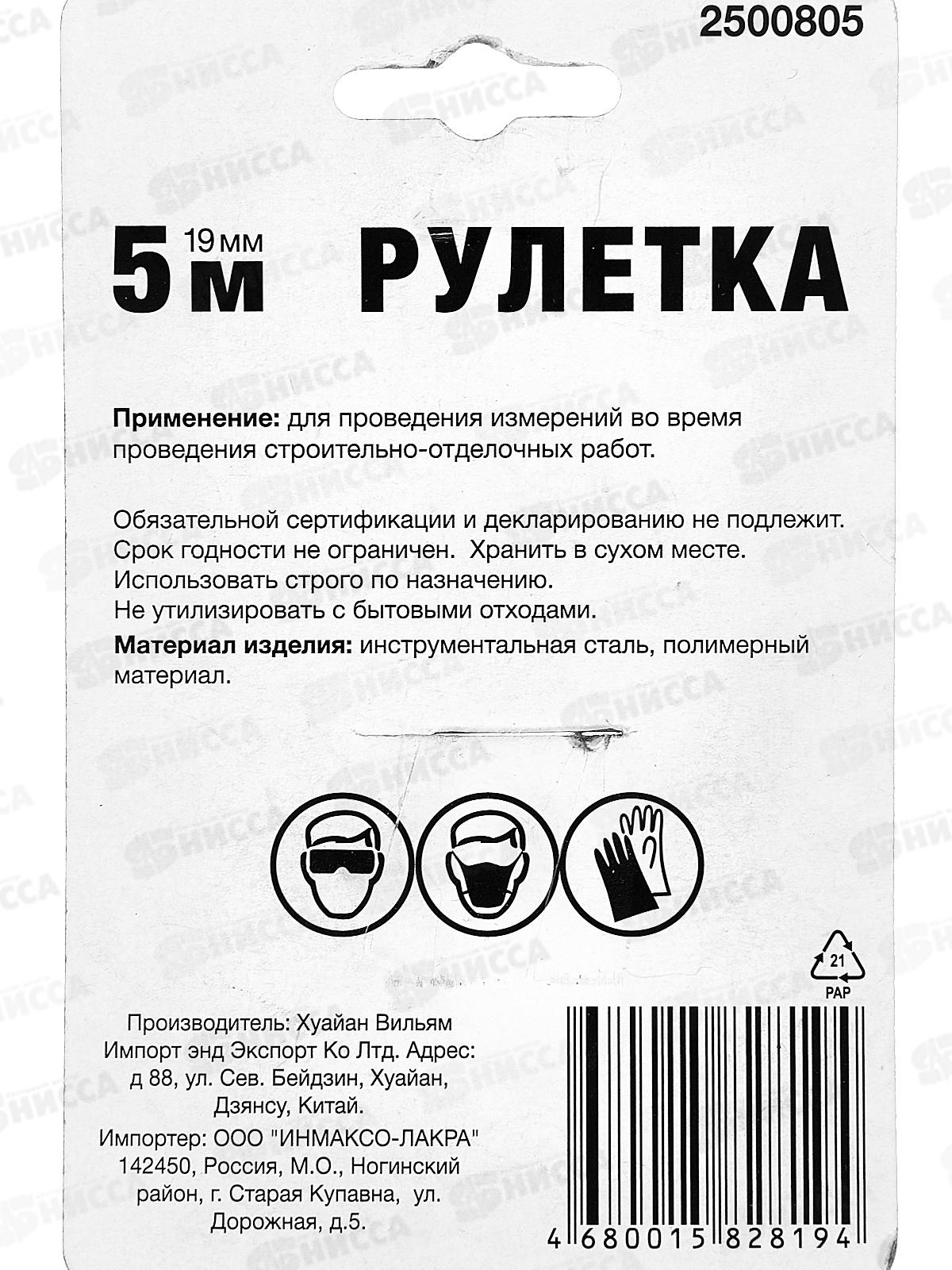Рулетка 5м*19мм, 2500805 *12