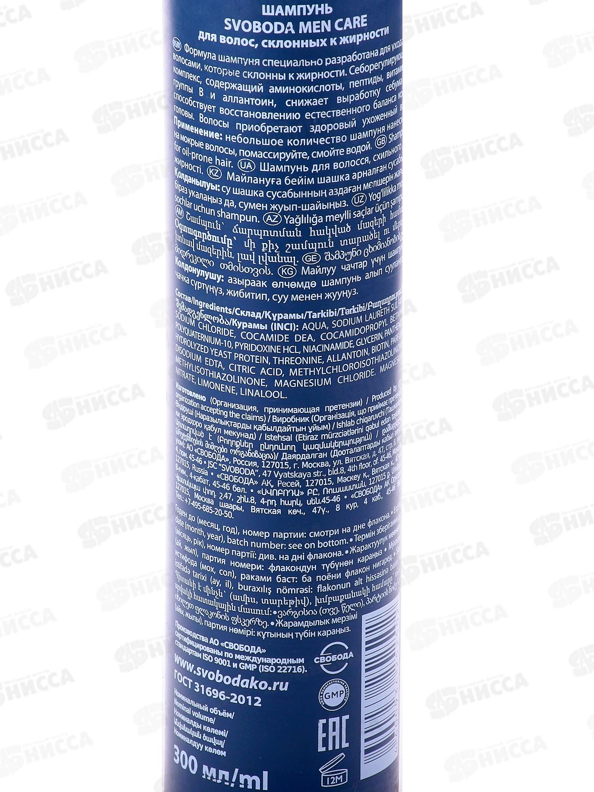 Свобода шампунь мужской MEN CARE склонных к жирности волос 300мл *15