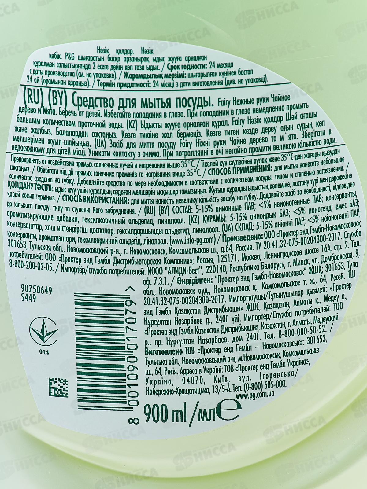 Тип товара: Средство для мытья посуды