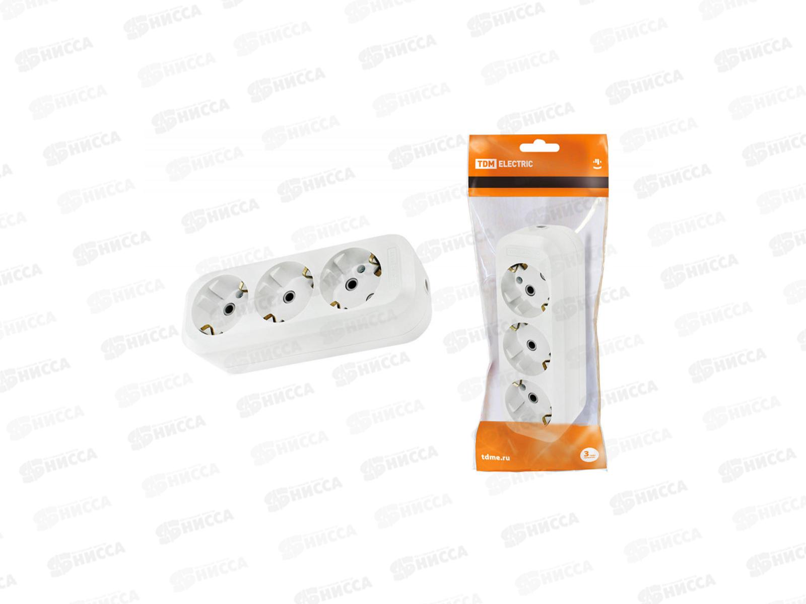 Колодка розетка TDM 3гнезда 2П+З с заземлением 16А 250В белая, 0013 *16/96