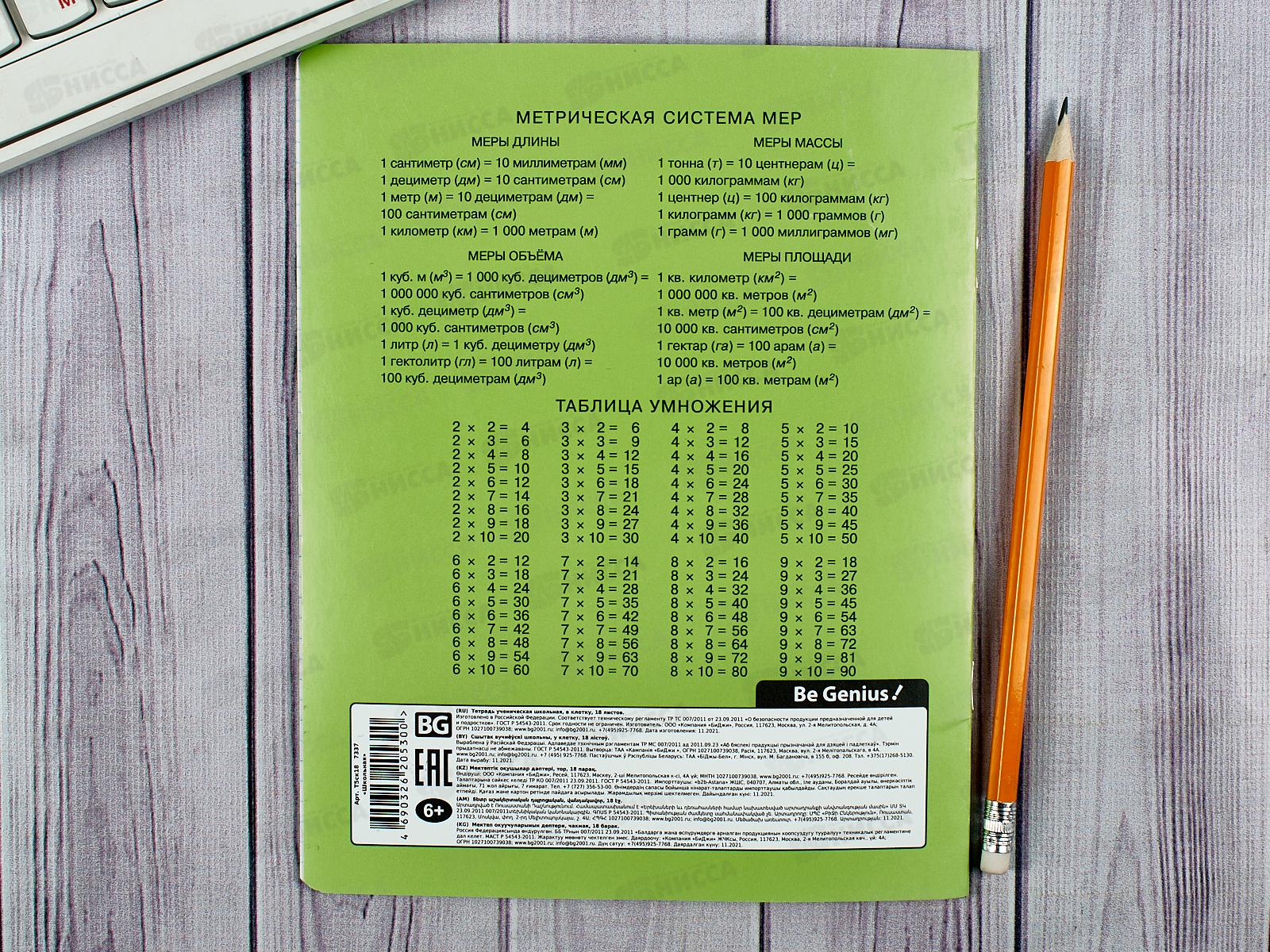 Тетрадь 18 листов клетка BG Школьная зеленая обложка,7337*12/144