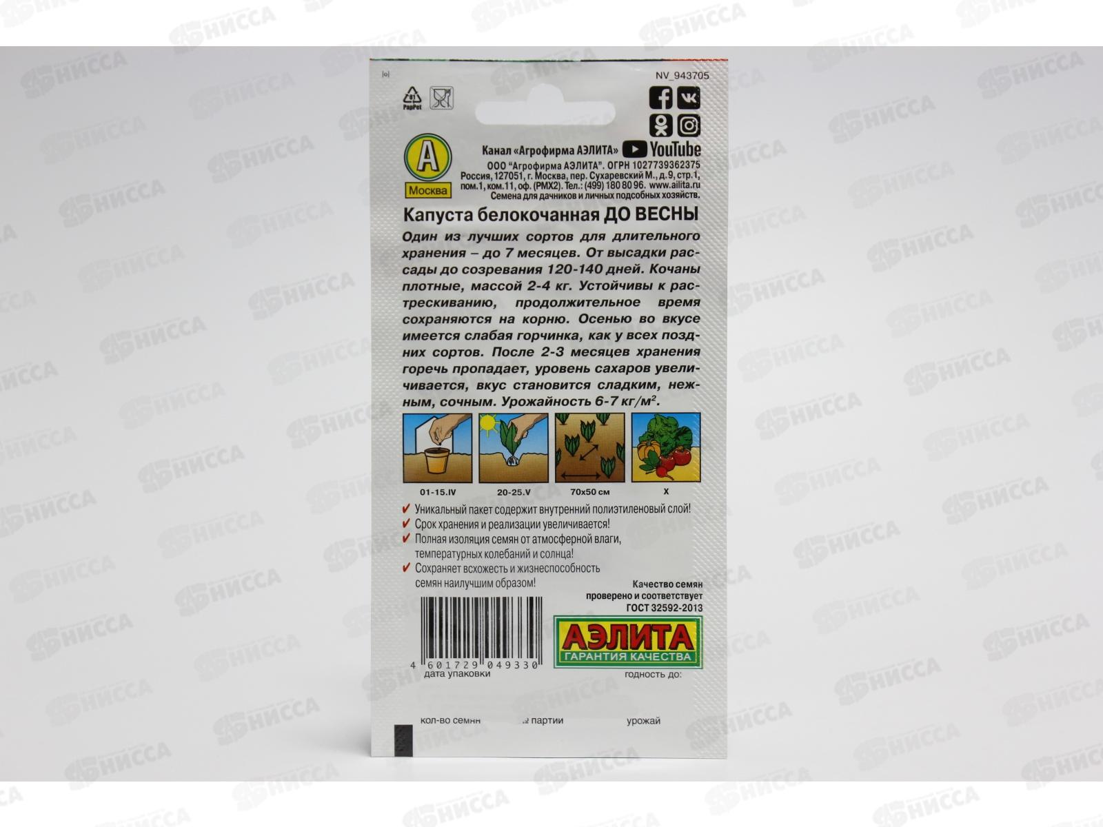 Капуста белокочанная До весны *10 АЭЛИТА срок до 12.24