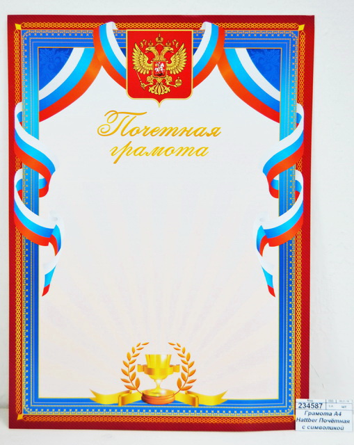 Грамота А4 Hattber Почётная с символикой 16731 *10/200