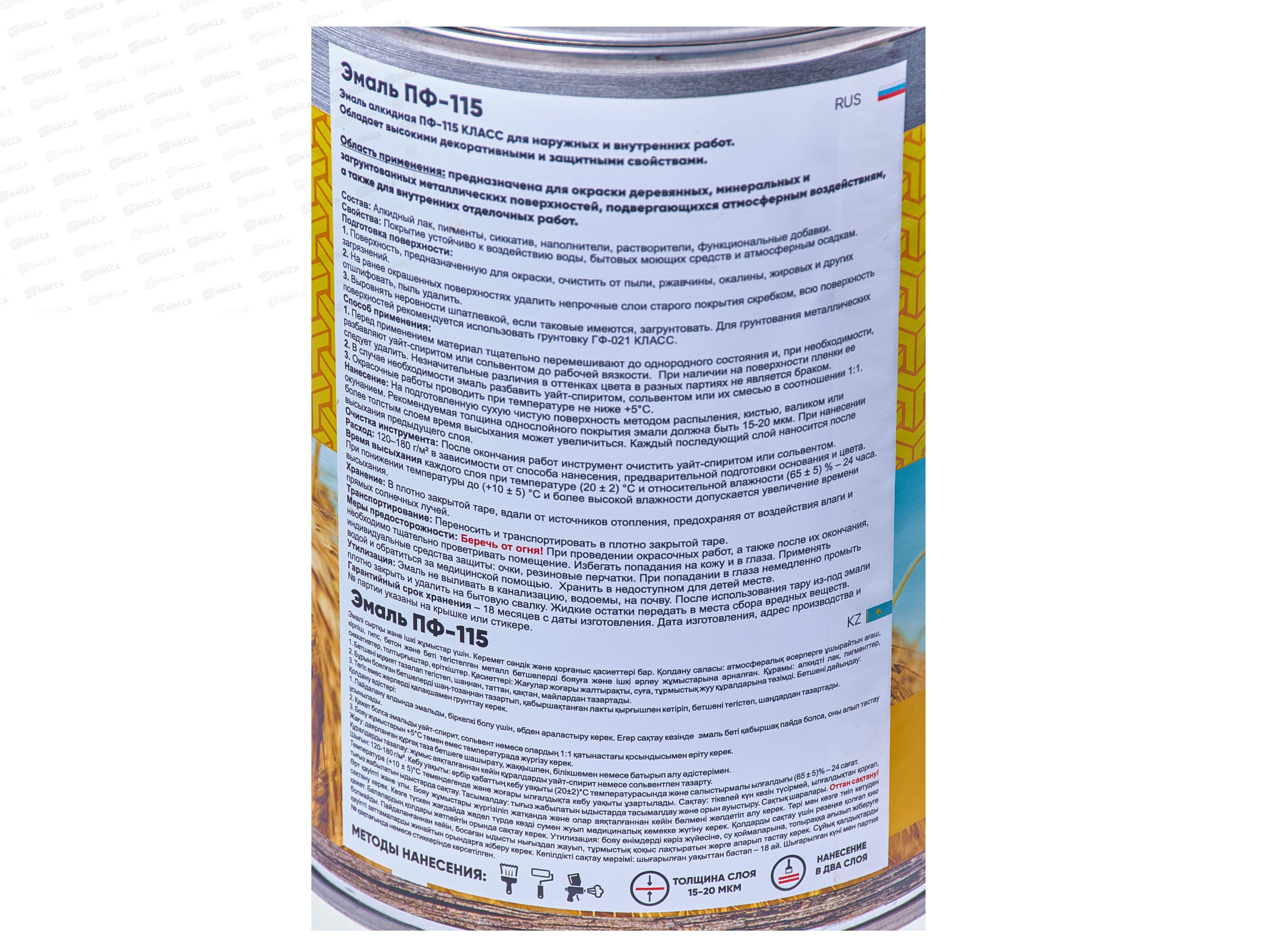Эмаль алкидная ПФ-115 предназначена для окраски деревянных, минеральных и загрунтованных металлических поверхностей, подвергающихся атмосферным воздействиям, а также для внутренних отделочных работ. При работе с эмалью нужно пользоваться индивидуальными средствами защиты: перчатками, маской, очками. Желательно не допускать ее попадания на кожу.