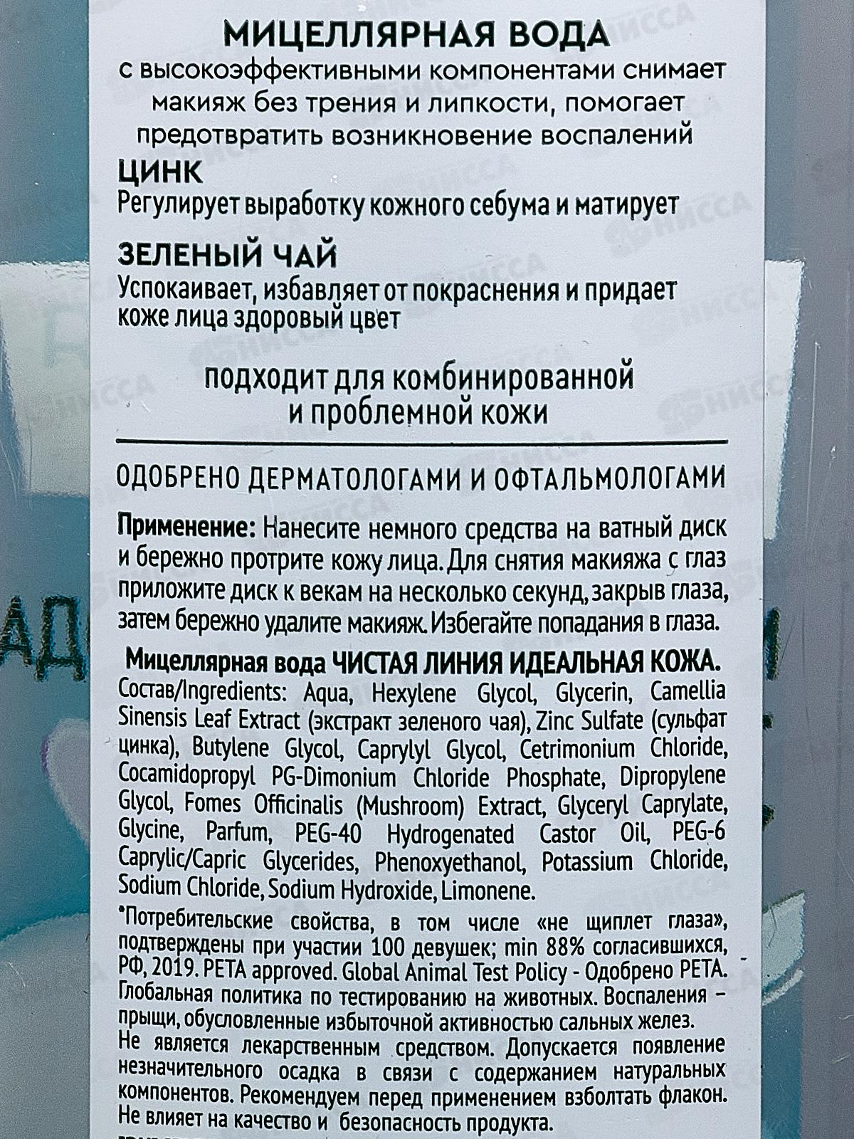 Концерн Калина Чистая Линия Мицеллярная вода Идеальная кожа 400мл *4/12