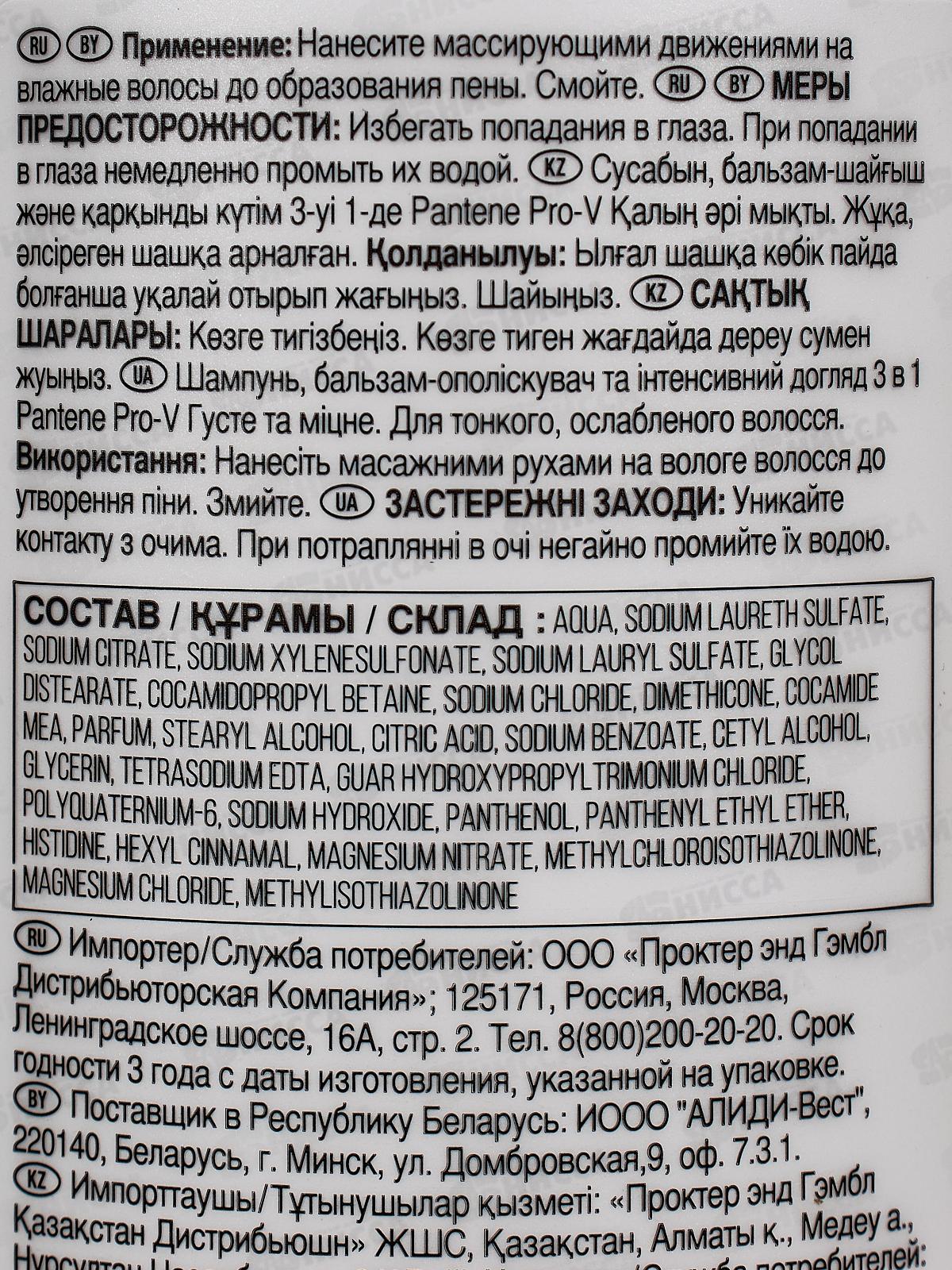Шампунь + бальзам-ополаскиватель + интенсивный уход Pantene Pro-V "Густые и крепкие" 3в1 очищает, облегчает расчесывание и восстанавливает волосы за одно применение. Заряжает волосы активными питательными веществами Pro-V, придавая им объем. Придает волосам здоровый внешний вид, объем и силу. Придает сияние и здоровый вид волосам от корней до самых кончиков. Питательная формула Pantene Pro-V для тонких, слабых волос.