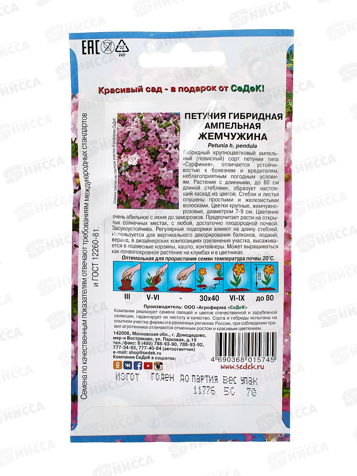 Петуния Жемчужина F1 (ампельная, тип Сурфиния, розовая) (Евро, 5) СеДек +