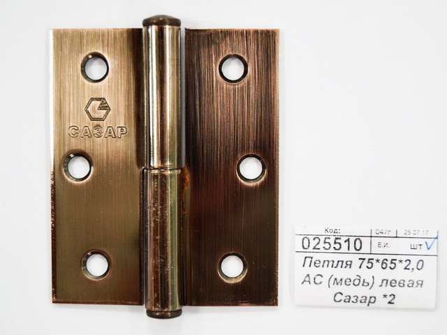 Петля 75*65*2,0 АC (медь) левая Сазар *2 300988
