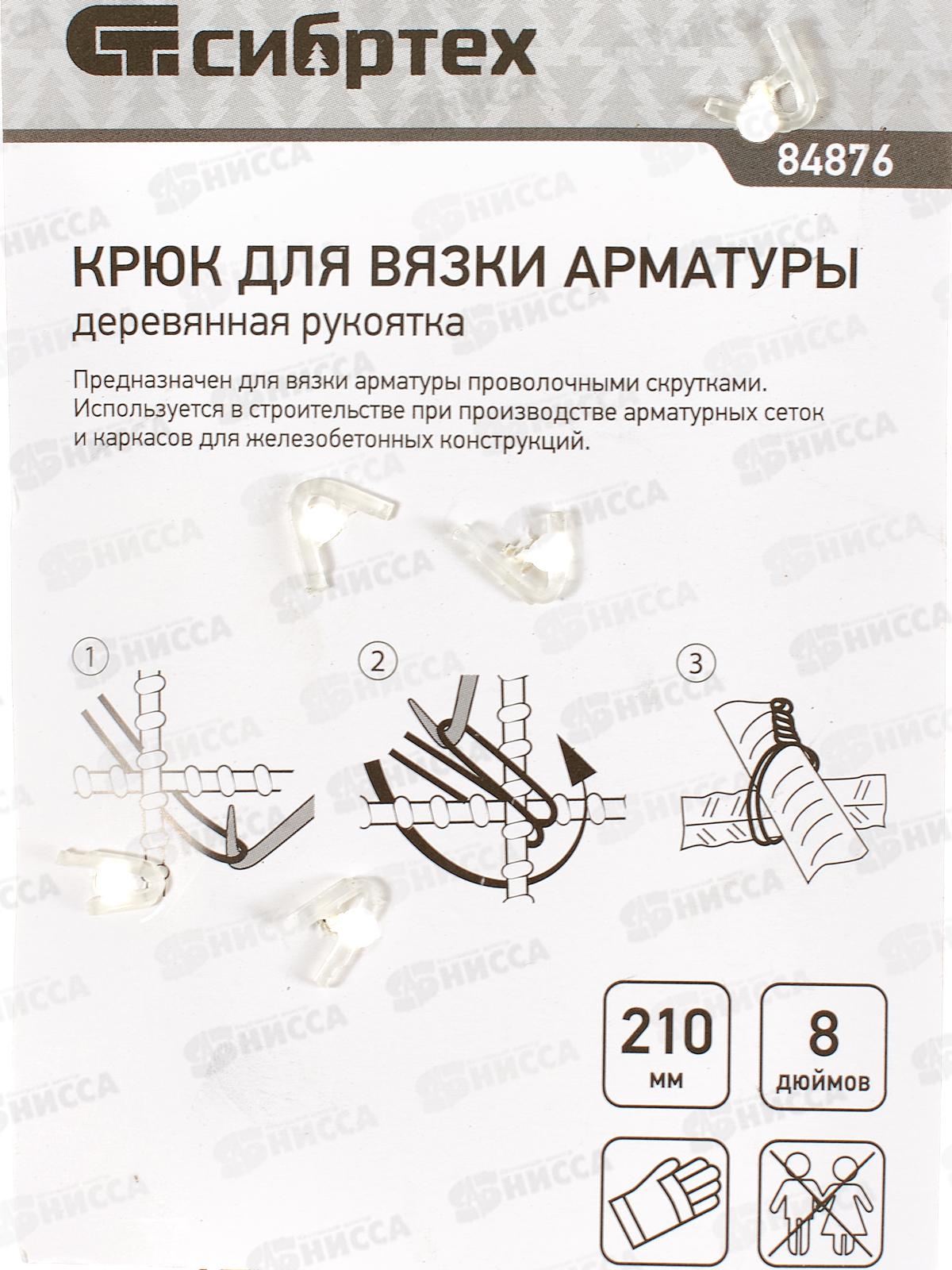 Крюк для вязки арматуры 210мм, с деревянной ручкой, Сибртех, 84876