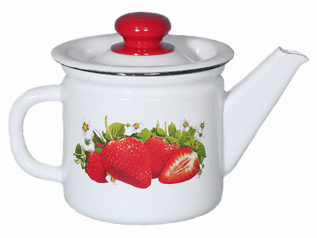 Чайник заварочный 1л декорированный белый с пластмассовой кнопкой на крышке С2707.3 *8