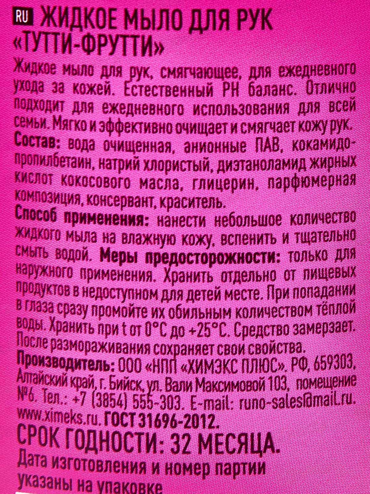 РУНО жидкое мыло Тутти Фрутти с дозатором 0,5л *12