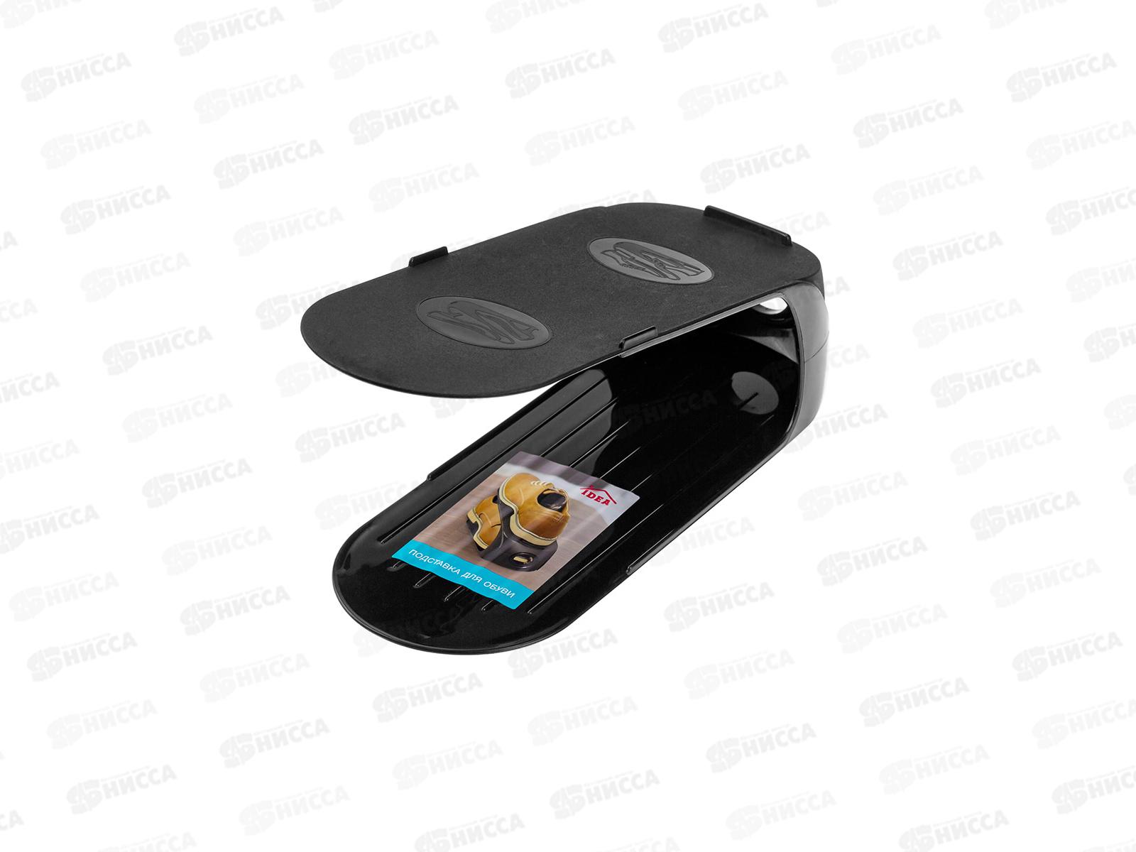 Благодаря подставке для обуви полка в шкафу умещает в 2 раза больше обуви, обувь аккуратно расставлена, не заваливается, не задевает и не пачкает соседнюю пару, легко взять нужную пару, потянув за отверстие-ручку. Подставка имеет: отверстие-ручку, нескользящую поверхность, ограничители для фиксации обуви. Подходит для большинства "Стандарт"ных размеров обуви. Прочная, не маркая, легко моется.